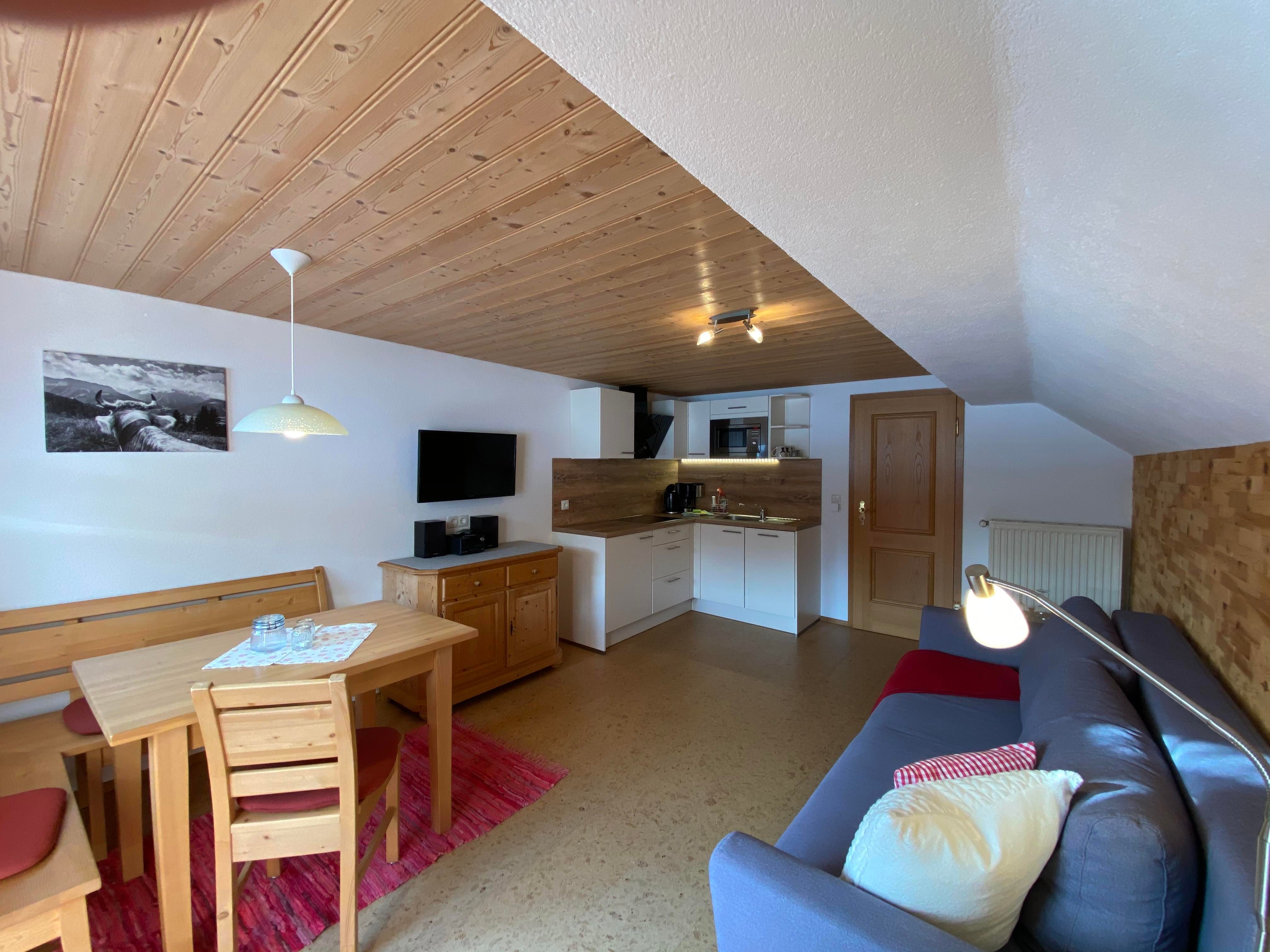 In unserem Bauernhaus erwarten Sie 4 gemütlich eingerichtete Ferienwohnungen mit Dusche und WC, alle mit möbliertem Balkon. Alle Ferienwohnungen sind mit einer Küche mit Spülmaschine, Mikrowelle mit Grillfunktion, Ceranfeld und Sat-TV ausgestattet.