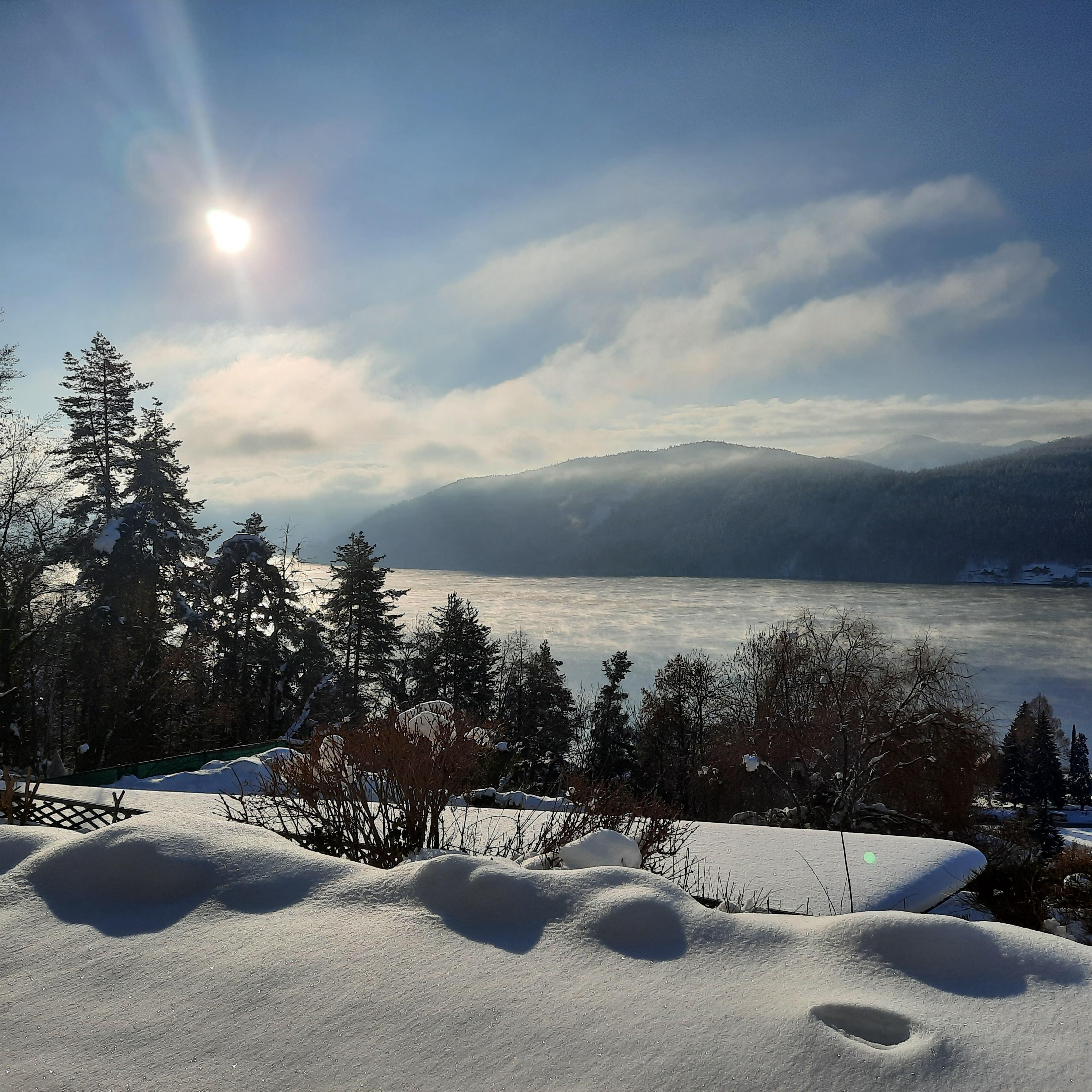 Beginnen Sie Ihren Urlaubstag mit einem großartigen Blick von Ihrem Balkon auf den Millstätter See.