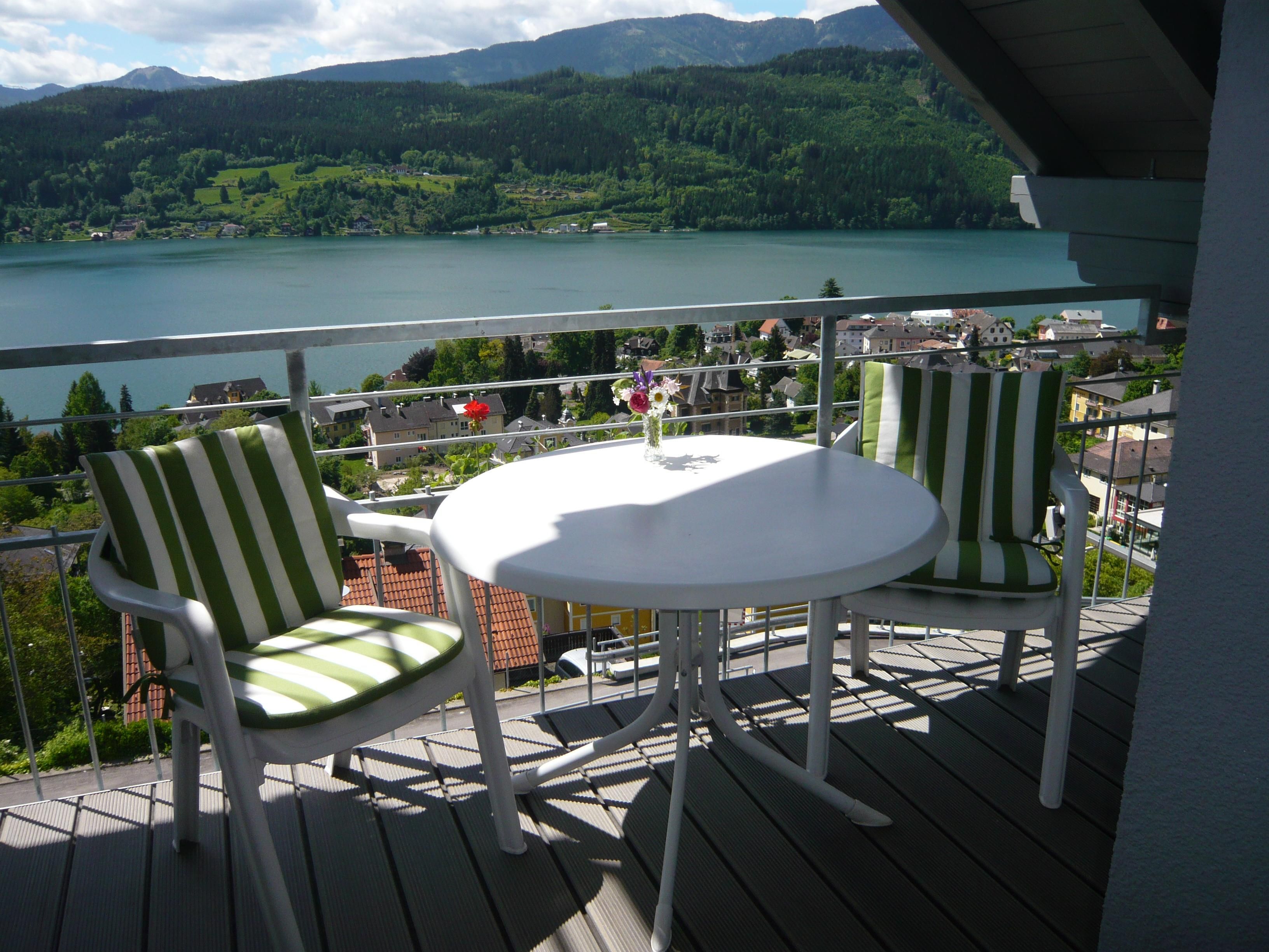 Beginnen Sie Ihren Urlaubstag mit einem großartigen Blick von Ihrem Balkon auf den Millstätter See.