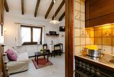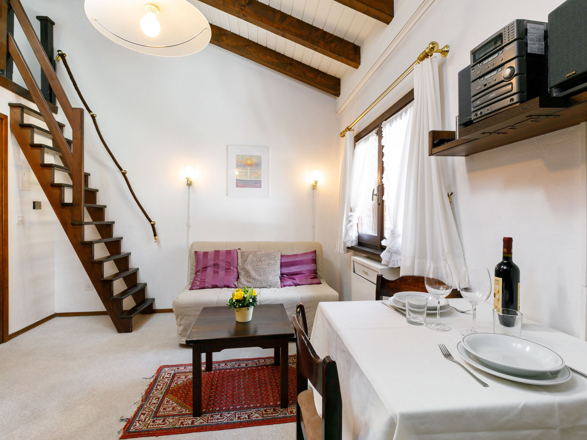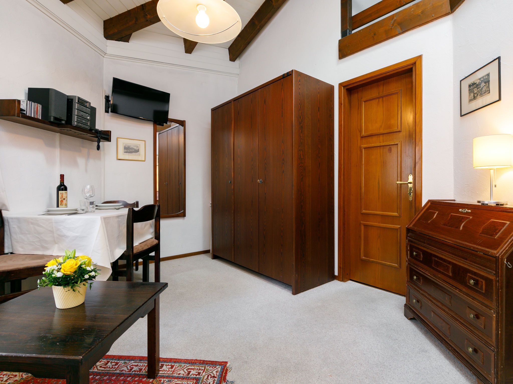 Residenza Chesa Margun 15-1, 1-Zimmer-Wohnung 33 m2 auf 2 Stockwerken, Nordlage. Zweckmässig eingerichtet: kleines Wohn-/Esszimmer mit 1 Diwanbett (160 cm, Länge 180 cm), Digital-TV und Radio. Kleine Küche im Eingang (Backofen). Dusche/WC, Bidet. E-Heizung. Obergeschoss: (steile Treppe) abgeschrägte, offene Galerie, Deckenhöhe 120 - 150 cm mit 2 Betten. Garage. Bitte beachten: für Kleinkinder nicht geeignet Wohnung auf Hofseite. Nichtraucher-Unterkunft. Anstelle eines abgeschlossenen Schlafzimmers befinden sich manche Schlafplätze in einem offenen Bereich (Galerie, Nische etc.).