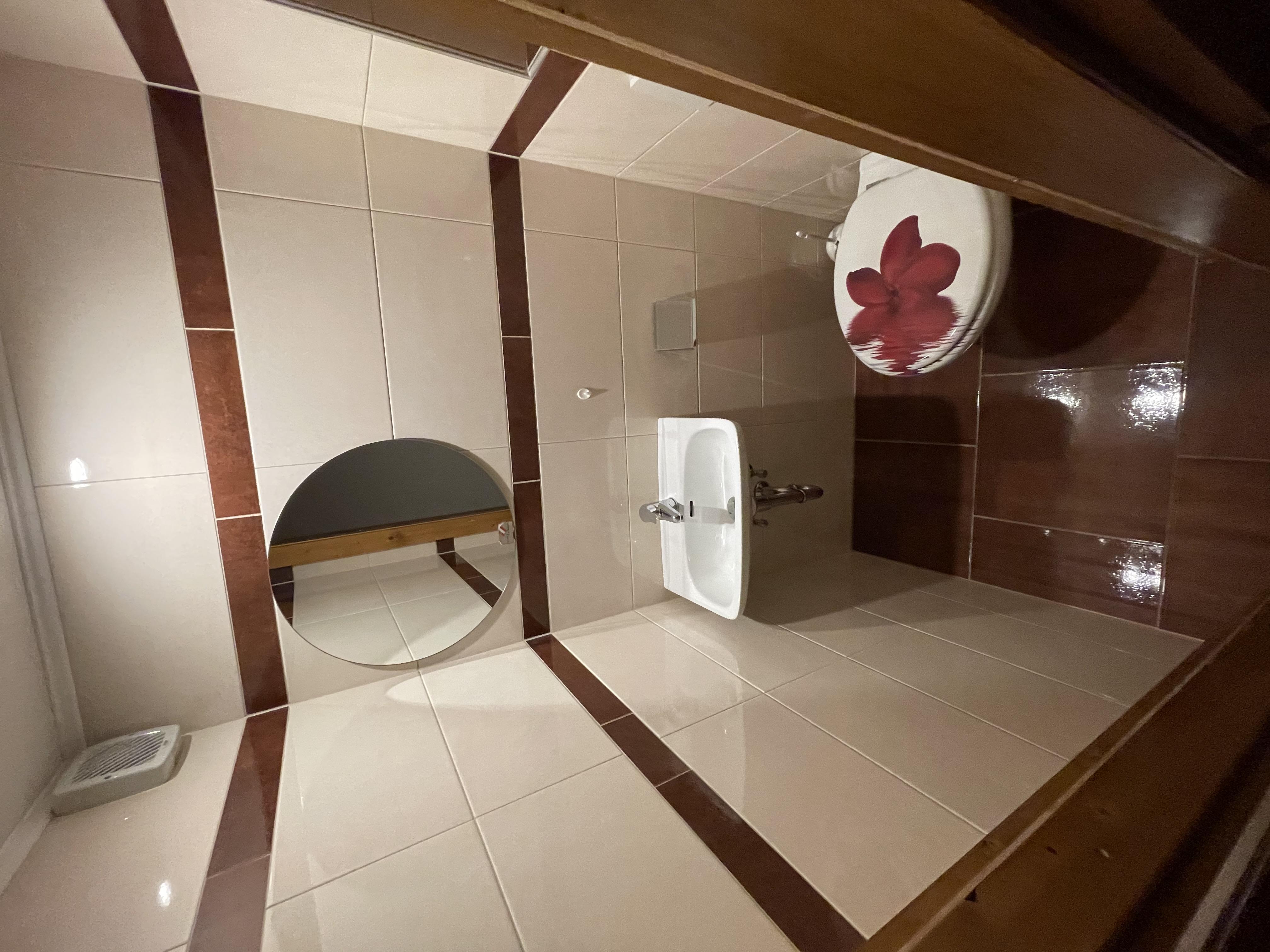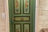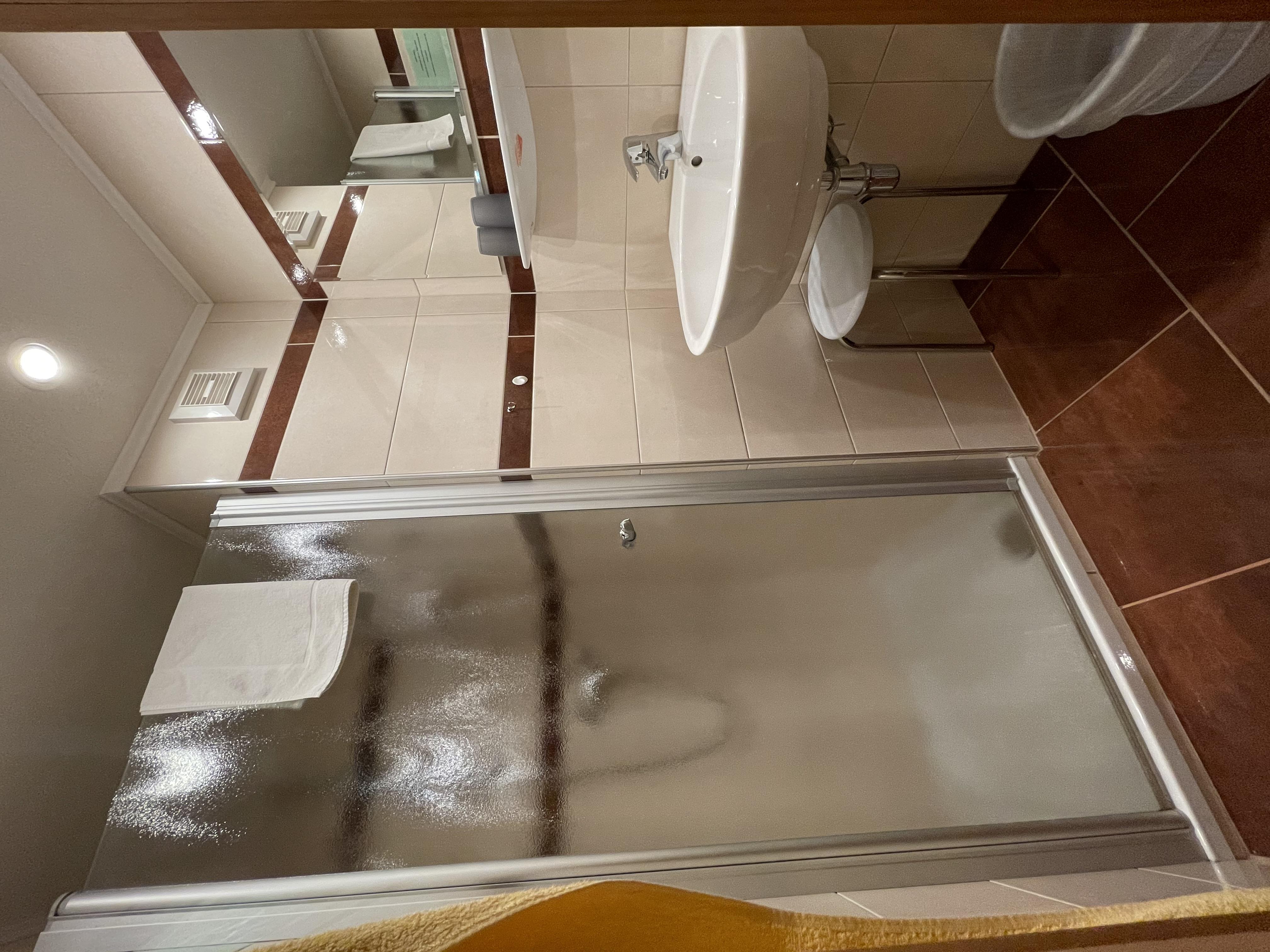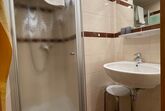 Geschmackvoll renoviertes Zimmer mit Altholzwand. Dusche und WC sind separat im Zimmer aufgeteilt.