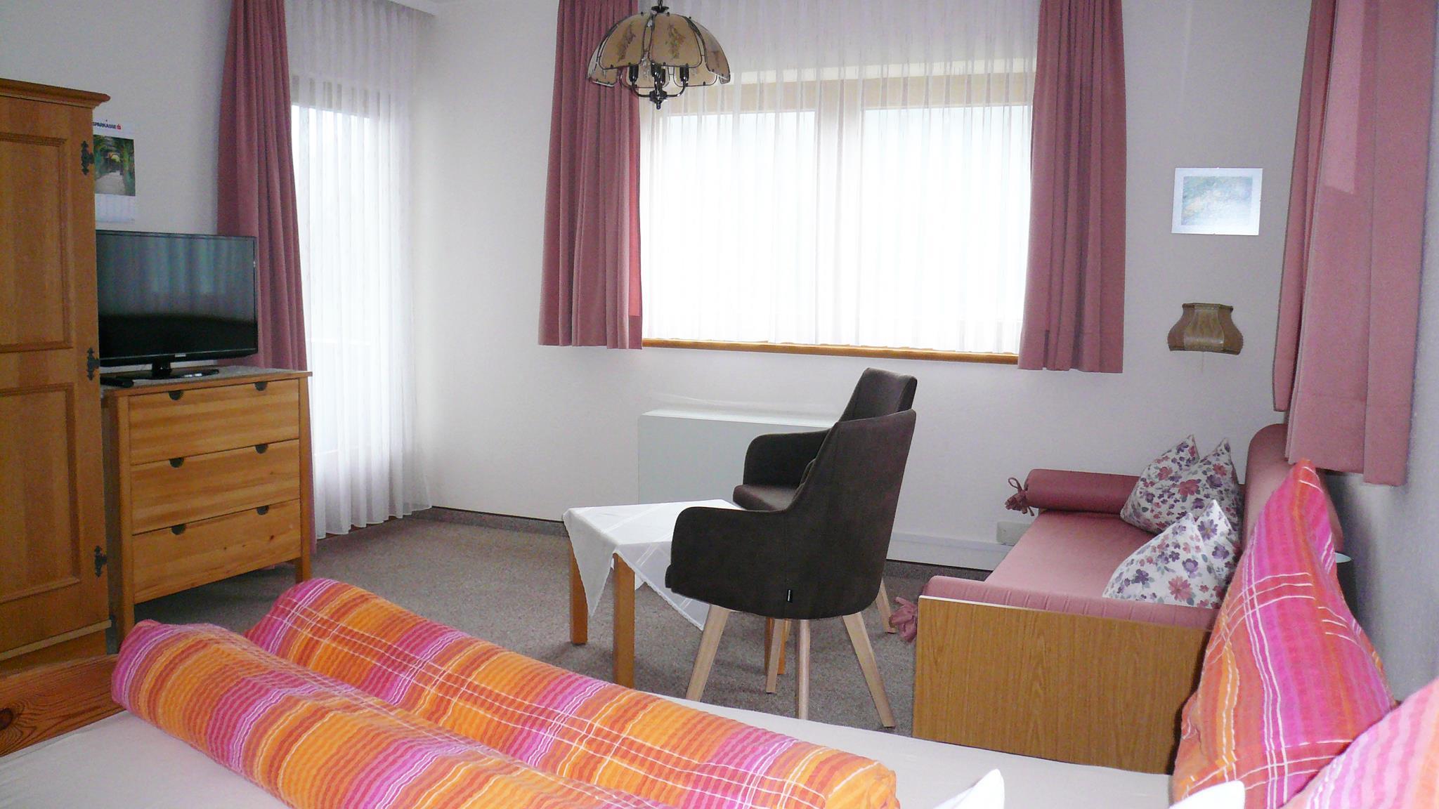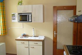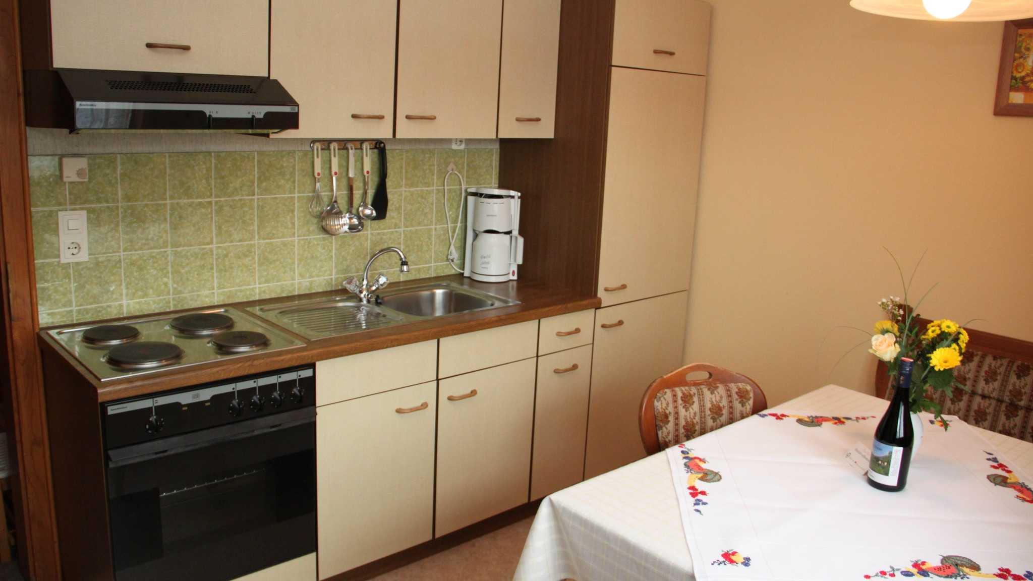 Komplett eingerichteter Wohnküche, Wasserkocher, Filterautomat und Kapselkaffeeautomat, ein großes Schlafzimmer mit Balkon, ein Wohn-Schlafzimer mit Kabel-TV und Balkon, im Sommer verglaster Balkon, Bad/WC, Safe. Bettwäsche und Handtücher und Geschirrtücher.