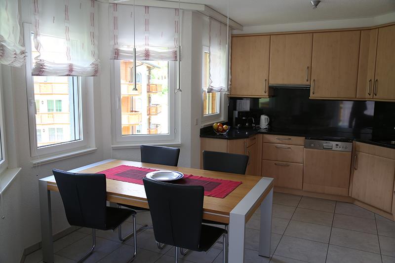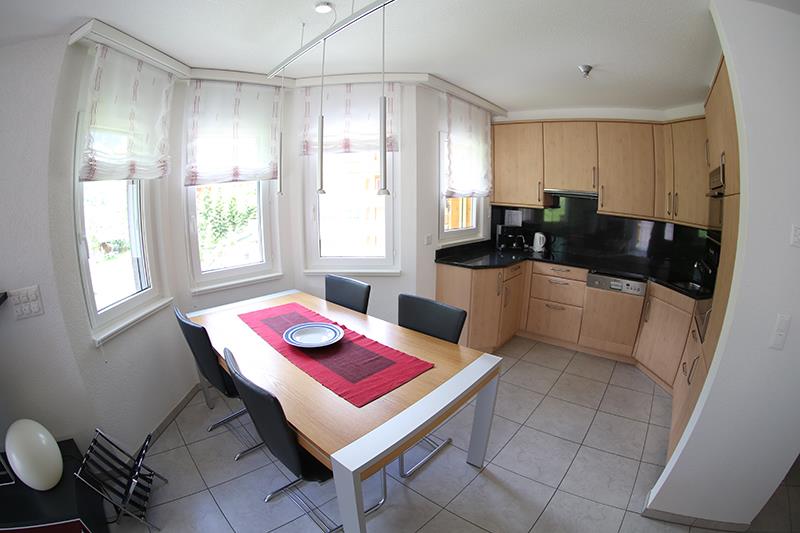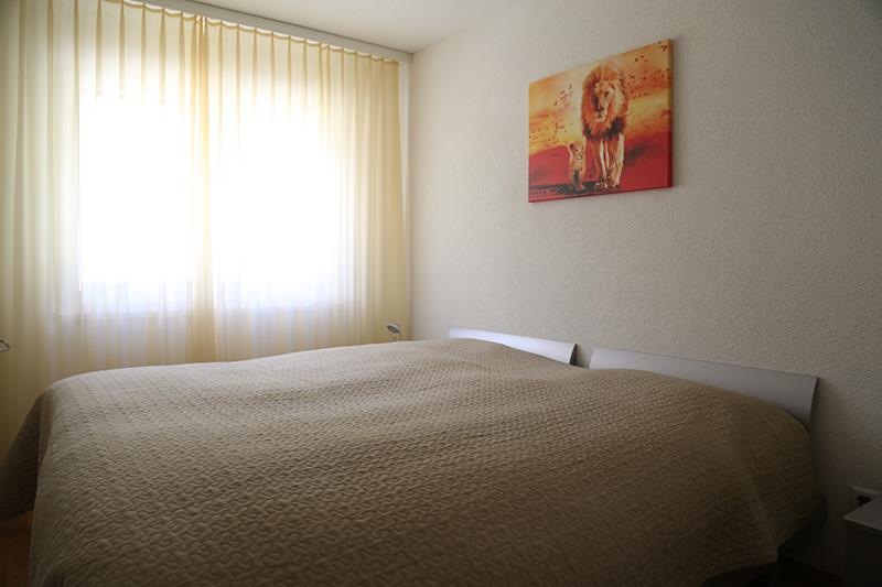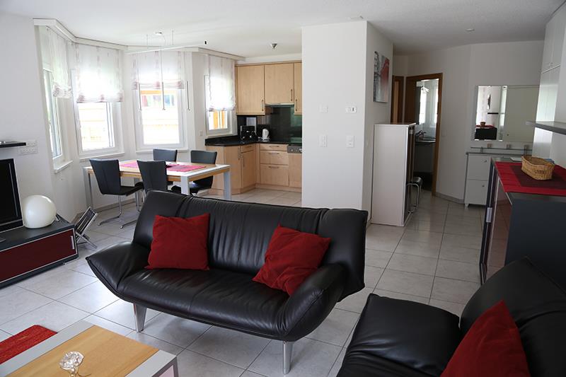 Luxuriöse 3-Zimmerwohnung, in modernem Neubau (3. Etage): Wohn- / Esszimmer mit Cheminée, gratis WiFi, Flachbildfernseher, DVD-Gerät, Stereo-Anlage, exklusiv eingerichtete moderne offene Wohnküche mit Geschirrspüler, Mikrowelle, Steamer, Raclette- und Fondue-Set, 2 Doppelschlafzimmer mit Flachbildfernseher, Badezimmer mit Wellnessdusche und Closomat-WC, zusätzlich separates WC. Süd-Balkon mit Panoramablick. Ruhige Lage, Aufzug, Ski- & Veloraum, Kinderspielplatz. In der Nähe: Torrentbahnen, Thermalbäder, Ortsbus-Haltestelle, Dorfzentrum. Garage zu mieten im Haus. Nichtraucher-Wohnung. Haustiere sind nicht erlaubt.