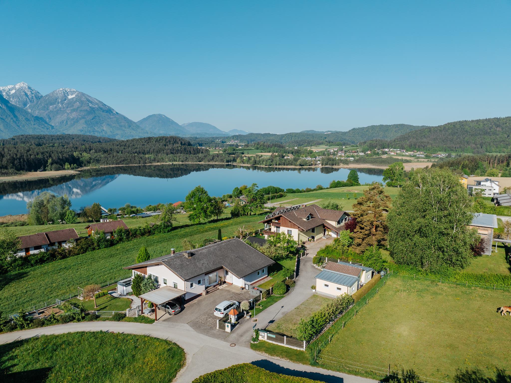 In unserem Ferienhaus stehen Ihnen 5 exklusive Ferienwohnungen (41-73m²) zur Verfügung. Es erwarten Sie komplett ausgestattete Räumlichkeiten, mit je zwei getrennten Schlafzimmern, einer Wohnküche mit Kochnische, gemütlicher Sitzecke, Dusche/WC, TV-/Sat Anlage wie auch einer großzügigen Dachterrasse/Balkon. Von dieser haben Sie, an den lauen Sommerabenden, einen atemberaubenden Blick auf die bezaubernde Kärntner Bergkulisse sowie den nahegelegenen Turnersee.