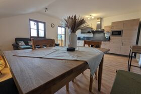 Die Ferienwohnung befindet sich im Dachgeschoss (2.Stock) eines Neubaus.