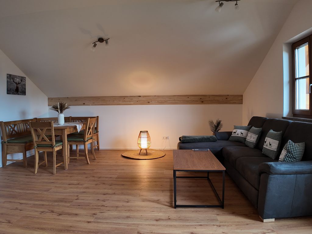 Die Ferienwohnung befindet sich im Dachgeschoss (2.Stock) eines Neubaus. Sie bietet Platz für bis zu 5 Personen. 2 Schlafzimmer und 1 Wohnküche In einem der Schlafzimmer ist es möglich zwischen einem Doppelbett oder zwei Einzelbetten zu wählen. Für eine 5te Person wäre eine Schlafcouch zur verfügung. Babybetten sind auf Anfrage verfügbar. Die Küchenzeile ist komplett ausgestattet mit E-Herd, Spülmaschine, Backofen und Mikrowelle. Geschirr und Besteck gehören zur Ausstattung dazu. Eine Kaffeemaschine, Wasserkocher und Toaster stehen ebenfalls zur Verfügung. Das Badezimmer verfügt über eine gemütliche Badewanne und einer Dusche, Föhn vorhanden. Das WC ist seperat Sat-TV und W-Lan vorhanden. Eine wunderschöne Aussicht haben sie von dem kleinen Ost Balkon. Eine Liegewiese um die Sonne zu genießen und ein Platz zum Grillen sind verfügbar. Liegen sind auf Anfrage Es ist optimal für Kinder geeignet es gibt Spielemöglichkeiten (Sandkasten, Rutsche, Trampolin, Schaukel) und es herrscht kein Autoverkehr. Ein Bäcker ist fußläufig erreichbar. Eine Rosi Mobil und eine Bushaltestelle sind vor der Haustür. Zum Zentrum sind es ca 1,5 km die sie auch gerne zu fuß fernab der Straße über einen schönen Wanderweg gehen können. /embed/1u0Pi27c6YU?si=IsGHO34UMxqf337f
