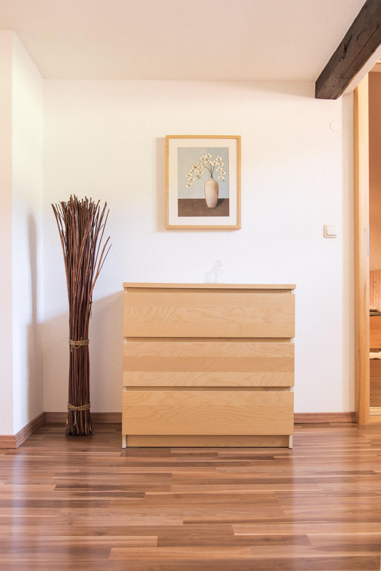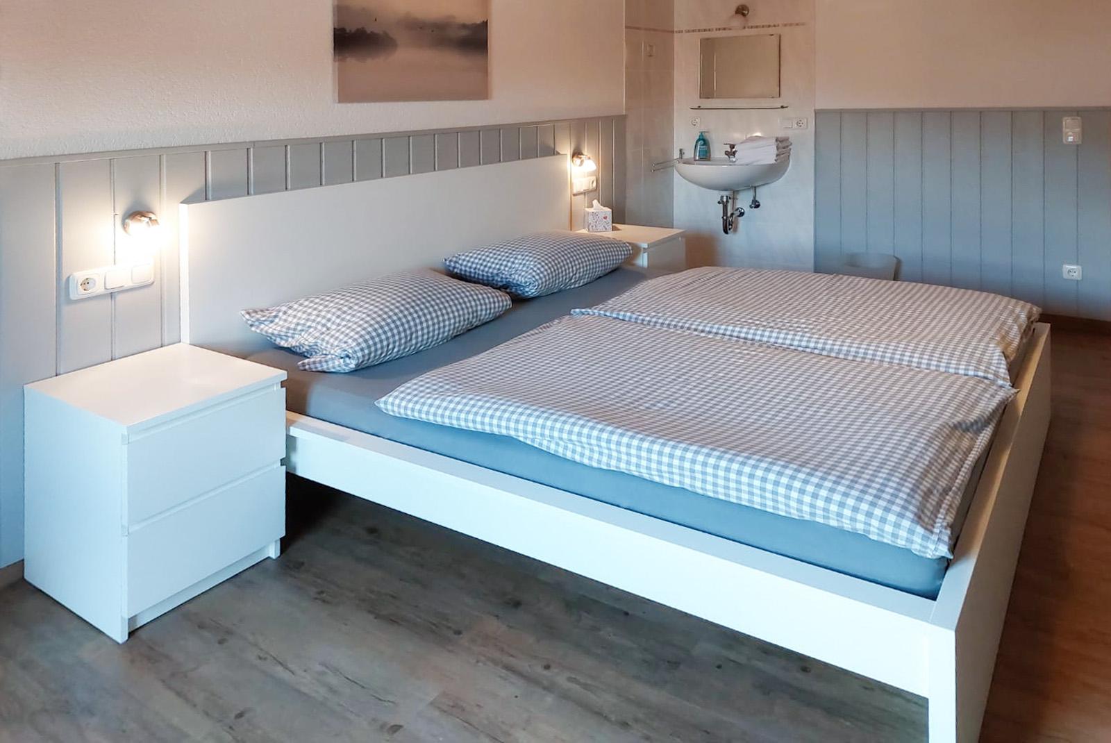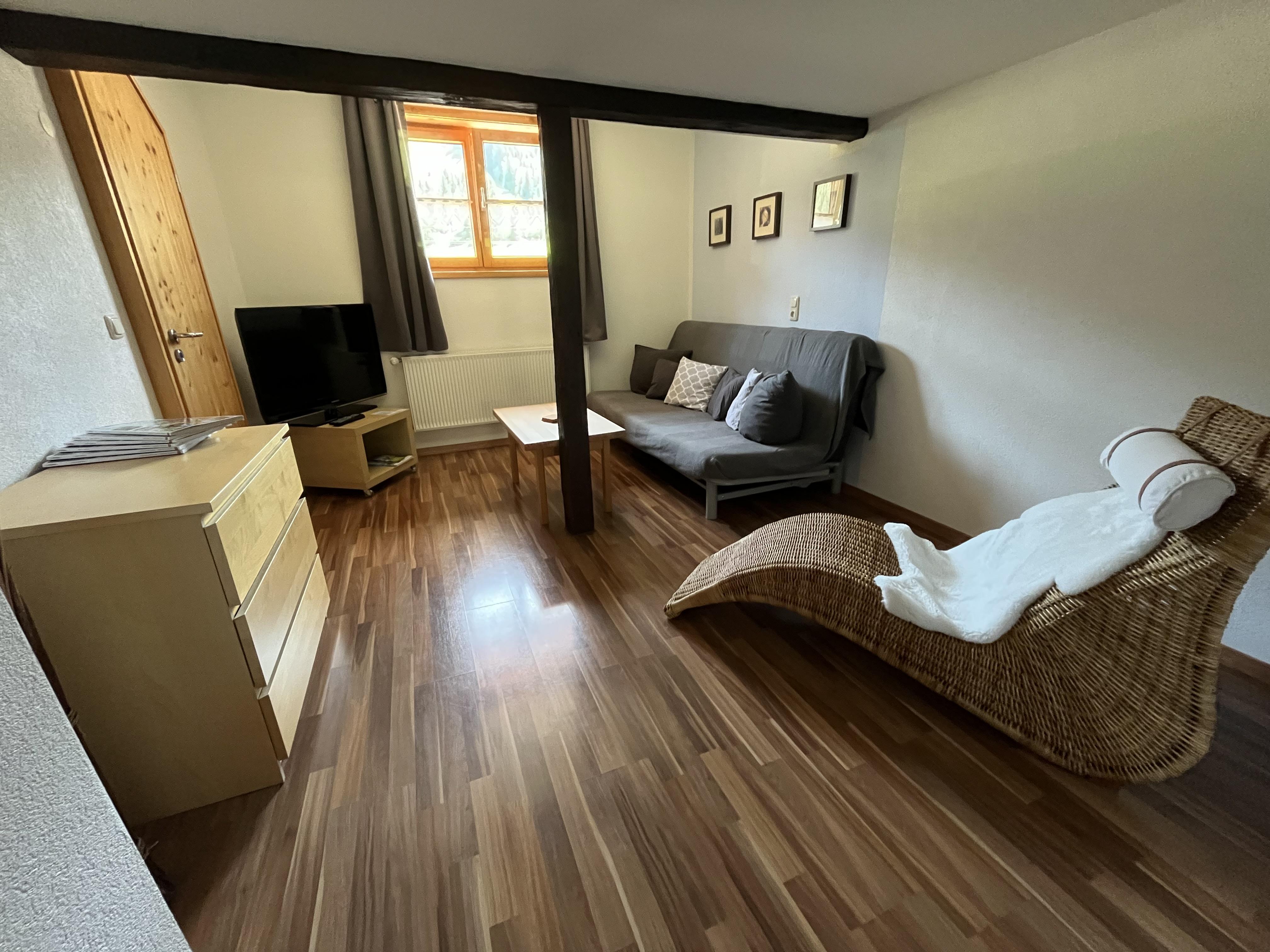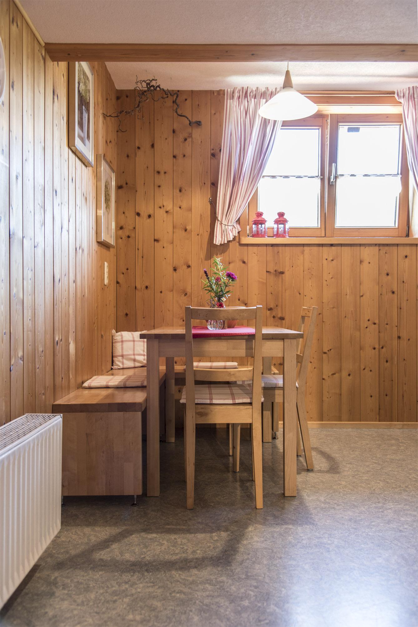 Unsere helle 4 Zimmer Wohnung Bergblick liegt in der zweiten Etage. Von dem wunderschönen, im Sommer mit Blumen geschmückten, möblierten Balkon mit Sonnenschirm aus, haben Sie einen einzigartigen Blick auf die umliegenden Wiesen, Wälder und Berge, sowie den hauseigenen Gartenbereich. Die weiße Landhausküchenzeile lädt mit Ihrer Ausstattung und dem Essbereich zum Kochen und Verweilen ein. Gemütliche Stunden erleben Sie in dem geschmackvoll eingerichteten Wohnbereich mit Laminat, Korbliege, Sofa und Flachbildfernseher. Das Sofa verfügt über eine Schlaffunktion. Im Elternschlafzimmer befindet sich ein eigenes Waschbecken, sowie einen Balkonzugang. Dieser kann bei Bedarf verdunkelt werden. Das separate Kinderschlafzimmer verfügt über ein 1,60 m großes Bett und ein Fenster. Es stehen allen Daunenkopfkissen und 4 Jahreszeitenbettdecken zur Verfügung. Das vollausgestattete Badezimmer mit ebenerdiger Dusche lässt ebenso keine Wünsche offen.