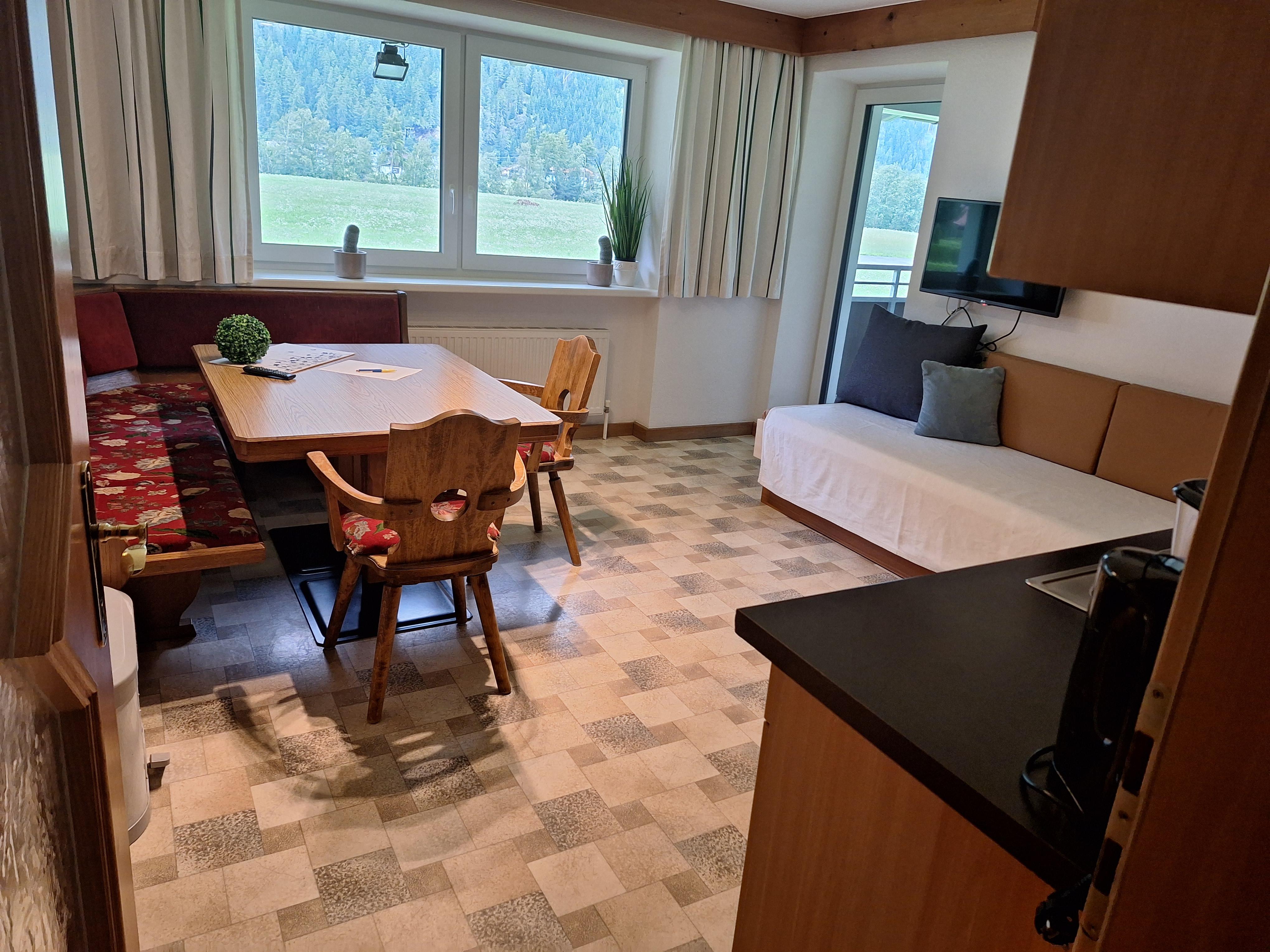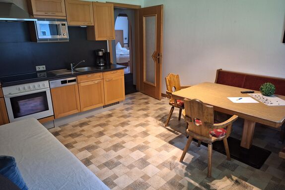 Das Appartment Stefan (ca. 65 m²) besteht aus einem Doppel- und einem Dreibettzimmer, einem Badezimmer mit Dusche/WC und Haarföhn, einem separaten WC und einer vollausgestatteten Wohnküche (Cerankochfeld, Backofen, Kühlschrank, Geschirrspüler, Mikrowelle und Filterkaffeemaschine) mit Essbereich und Sofa. Genießen Sie das einzigartige Bergpanorama auf dem möblierten Balkon.