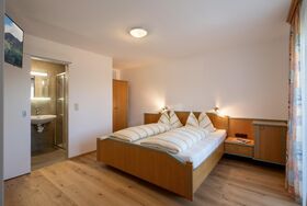 Das Apartment Gartenblick besteht aus einer Wohnküche mit Essecke, Sofa, Kleiderschrank und Balkon mit Blick auf das Kitzbühlerhorn. Der Schlafraum bietet ein Doppelbett, Kleiderschrank, TV und ein kleines Bad mit Dusche/WC. Beide Räume haben Zugang zum Balkon. Es befindet sich im 1. Stock.
