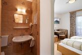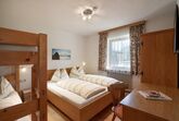 Das größte Apartment im Haus (76 m²) bietet 3 Schlafzimmer und eine Wohnküche. Es gibt 2 Doppelzimmer und ein Vierbettzimmer mit Stockbett und Doppelbett. Zudem gibt es ein Bad, ein separates WC und ein integriertes DU/WC im Doppelzimmer. Die Wohnküche ist mit einem Küchenblock, Geschirrspüler, Kühlschrank, Mikrowelle, Toaster, Filterkaffeemaschine, Wasserkocher und einer großen Essecke ausgestattet. 4x Sat-TV sind vorhanden. Das Apartment liegt im 1. Stock.