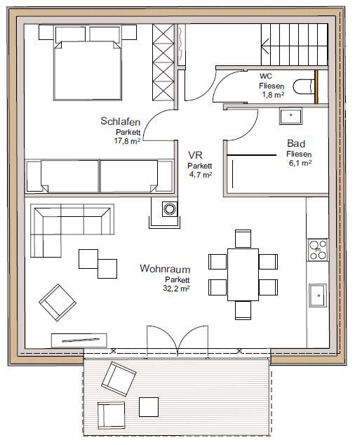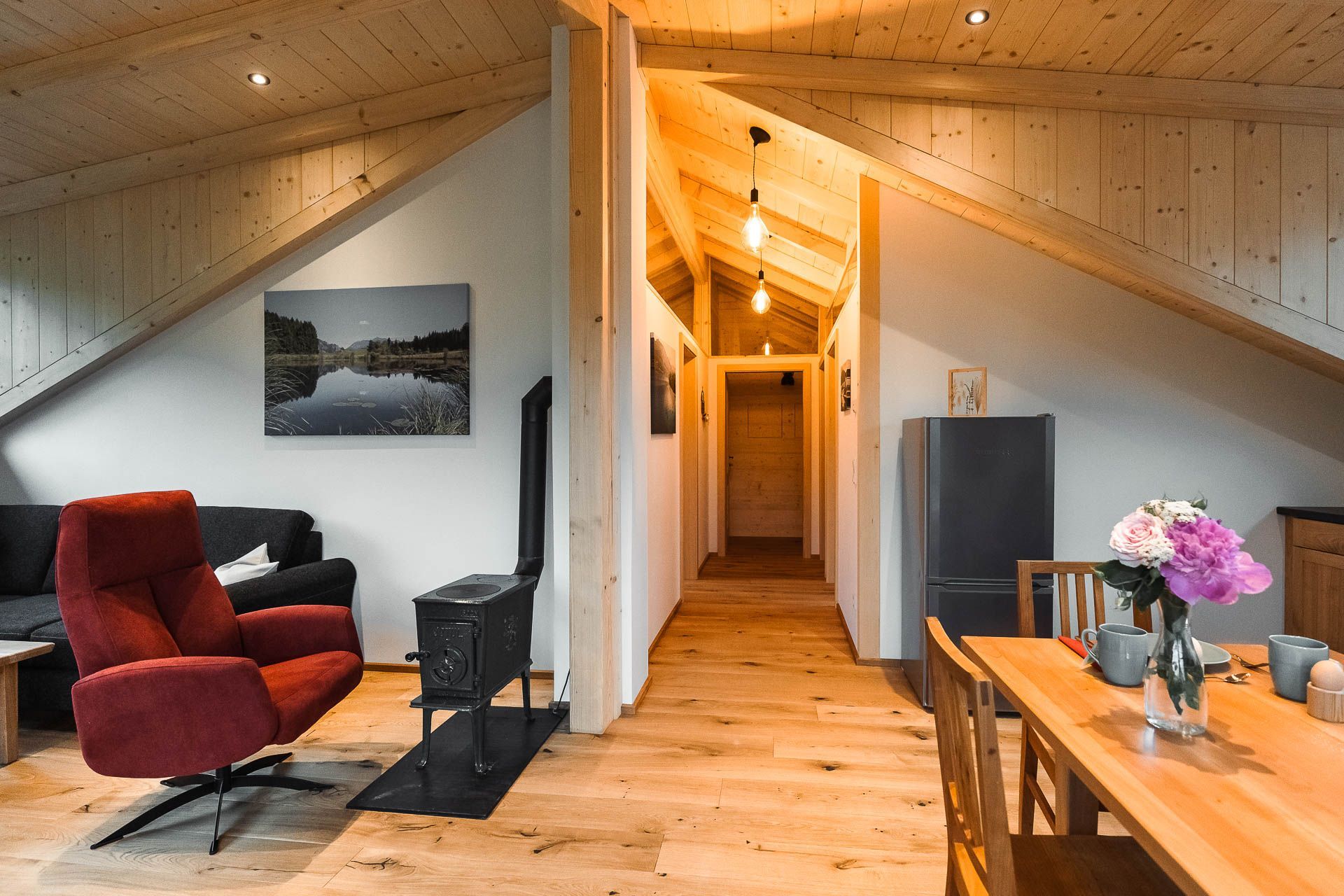 Durch unsere Liebe zum Holz strahlen die Wohnungen viel Wärme und Gemütlichkeit aus.