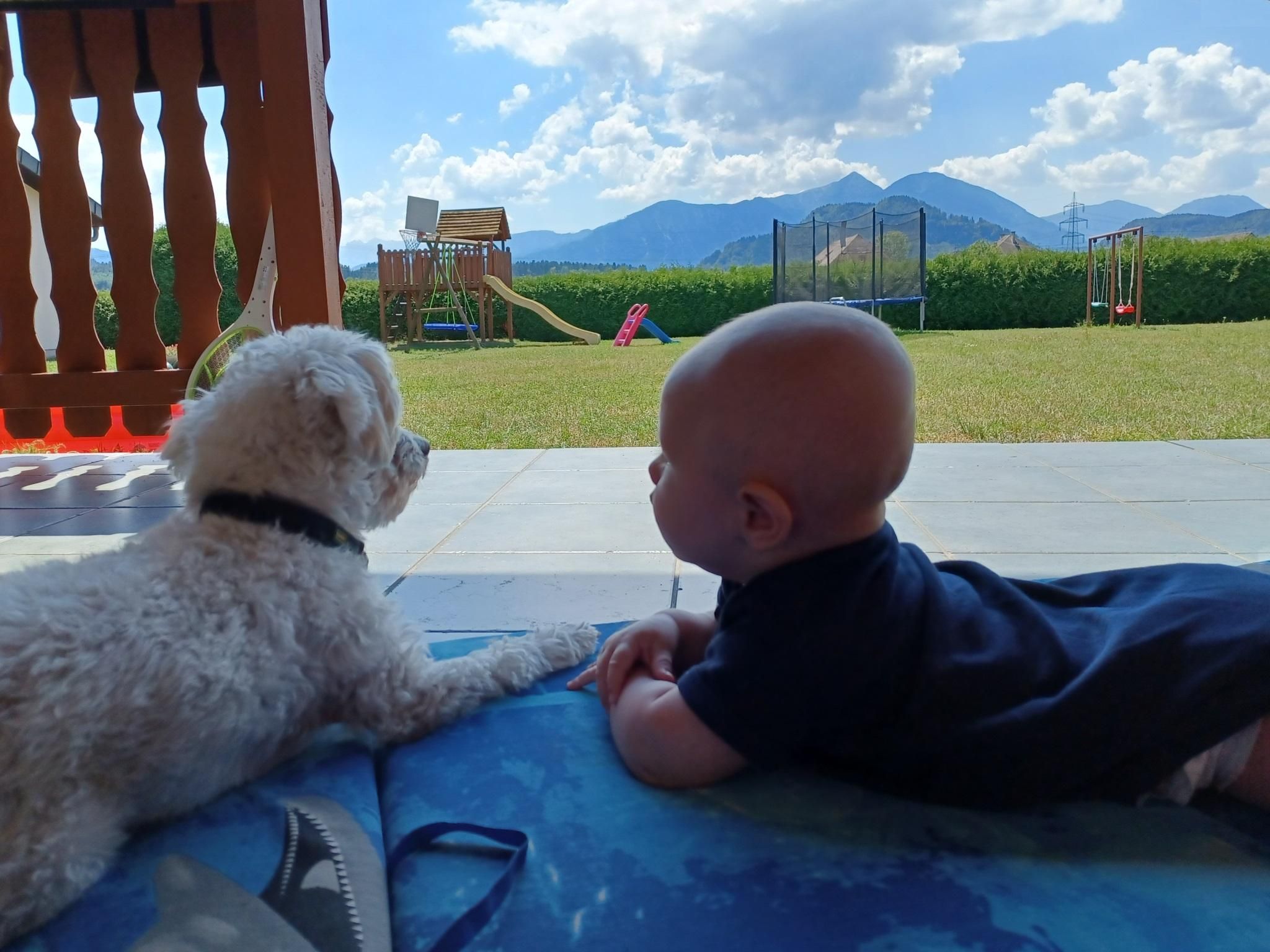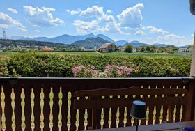 Highlight des Bungalows bleibt aber natürlich der atemberaubende Blick von der großzügigen überdachten Terasse in Richtung der Karawanken / Steiner Alpen.