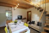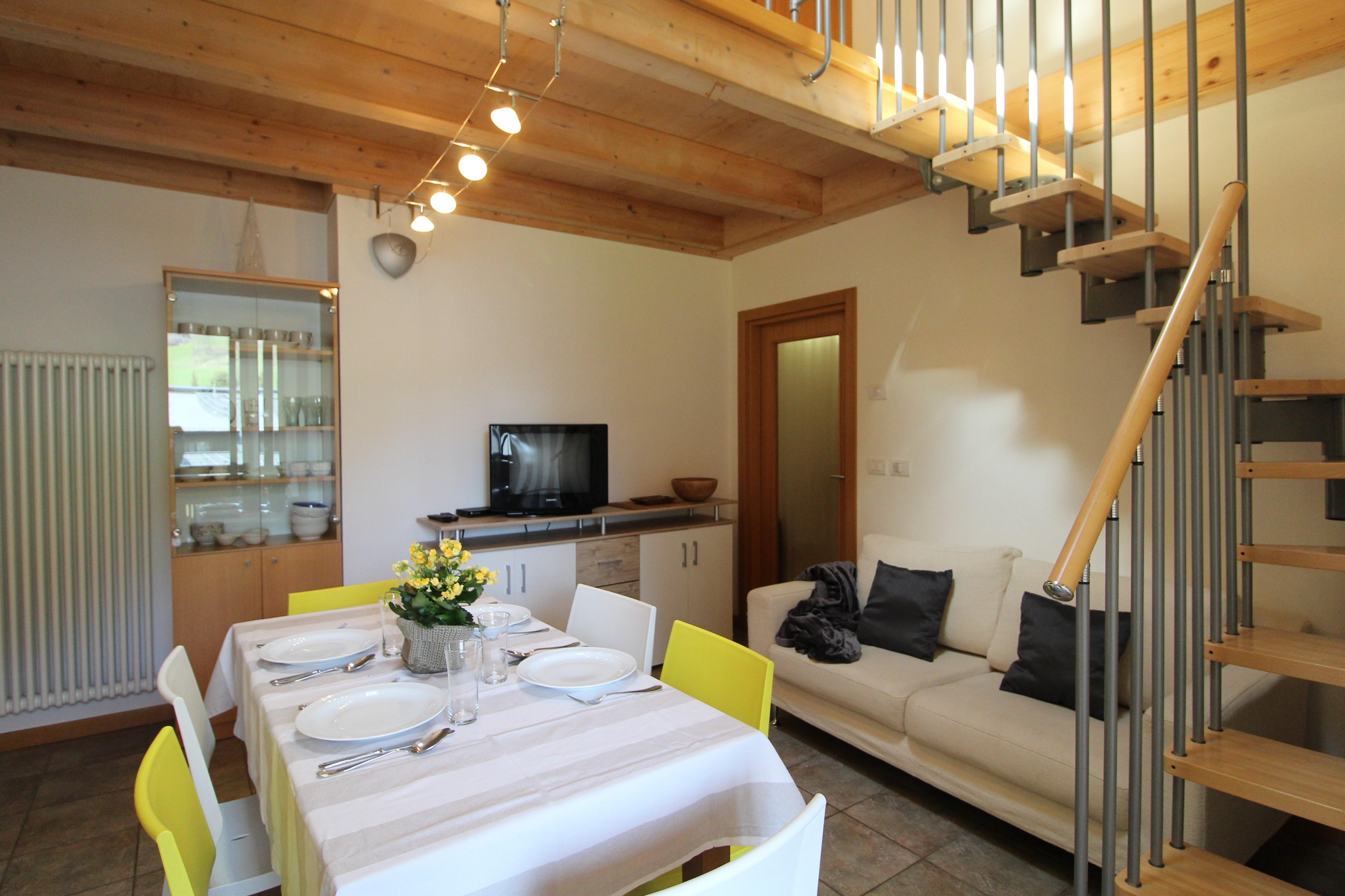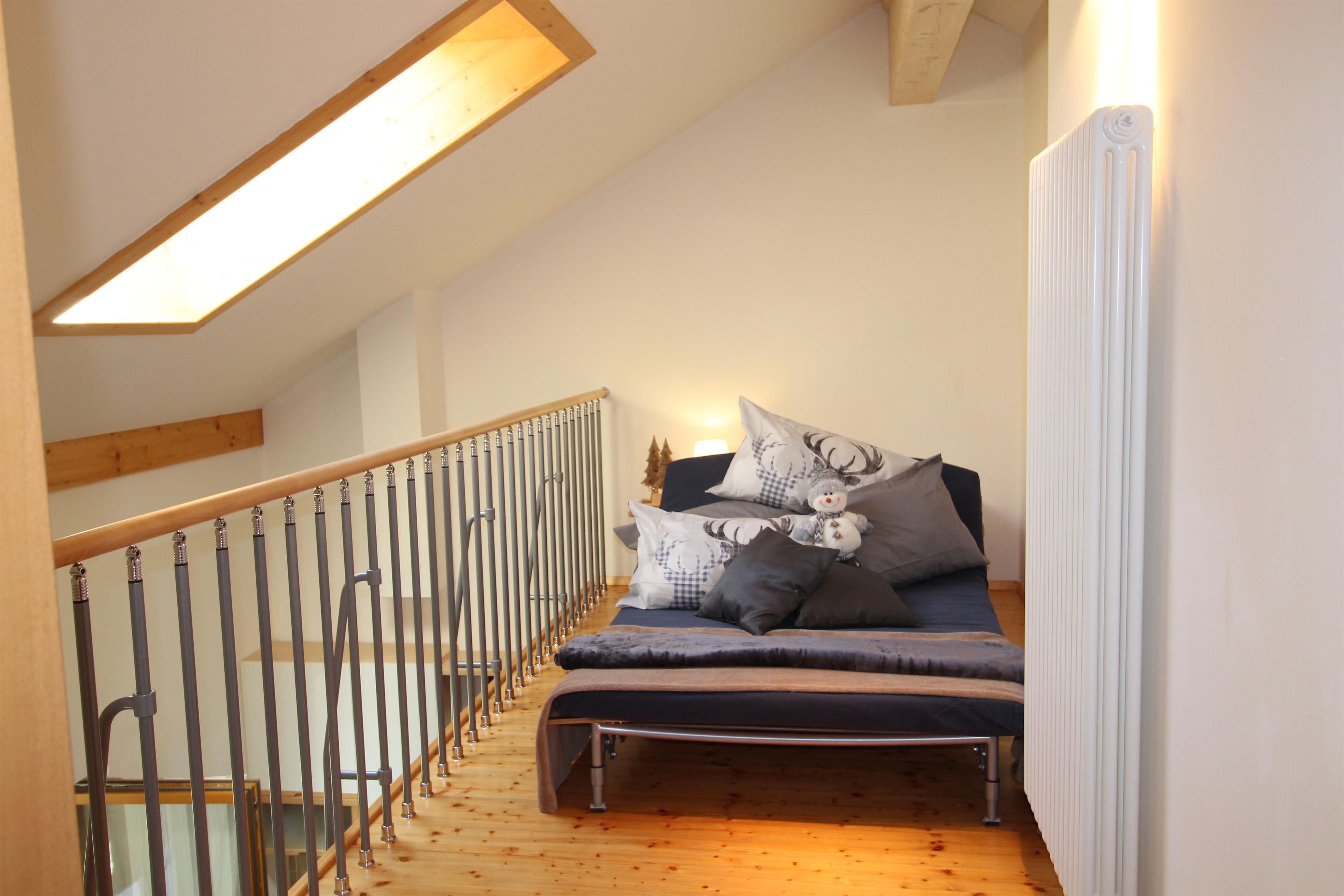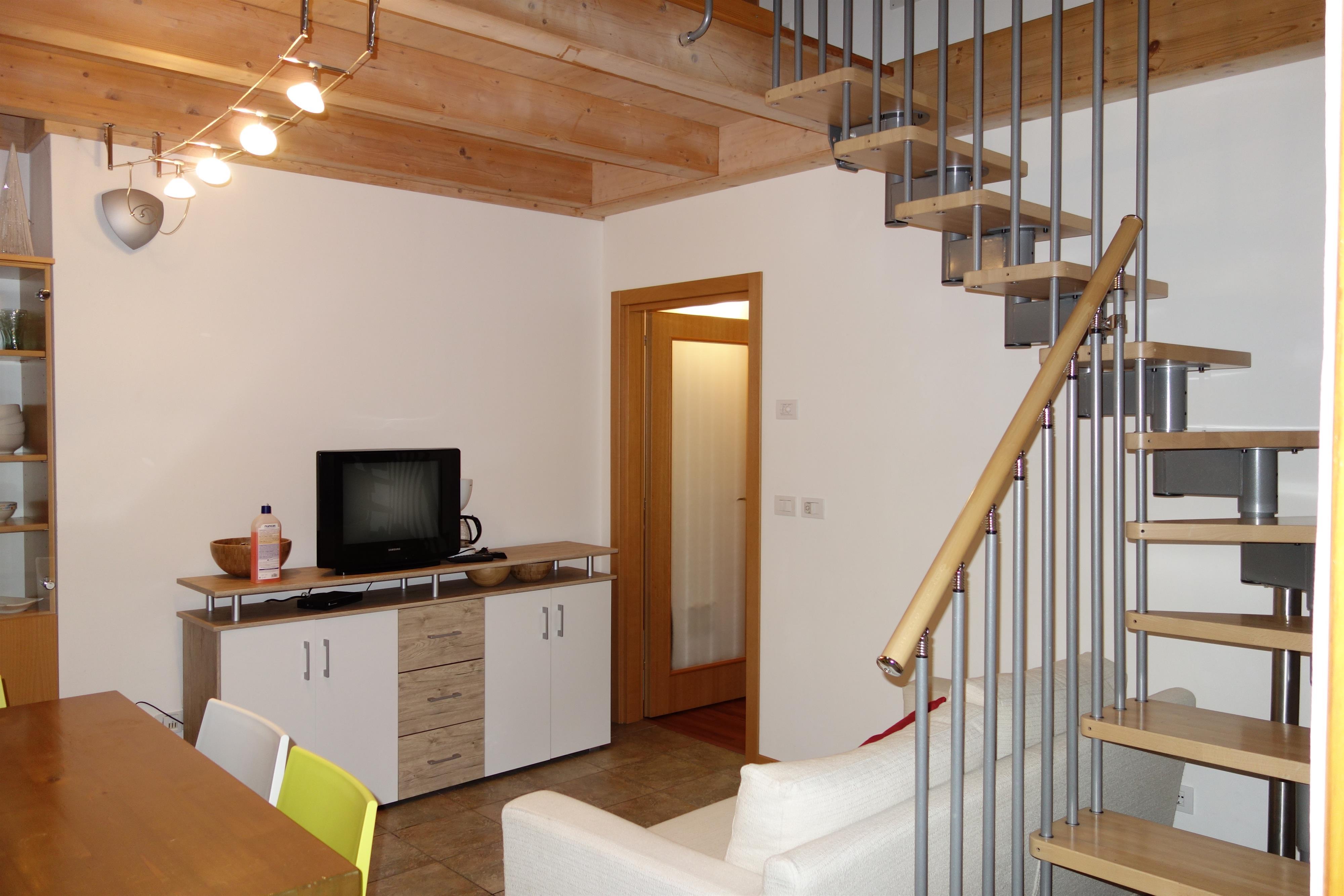 Schöne und helle Wohnung in panoramischer Lage über Bad Kleinkirchheim, zwei Autominuten von Supermärkten und Restaurants, in unmittelbarer Nähe zum Maibrunnbahn. Es handelt sich um ein auf zwei Niveaus entwickeltes Haus , mit bequemem Wohnzimmer mit Kochnische (mit Geschirrspueler) und großem panoramischen Balkon, einem Schlafzimmer mit Doppelbett, einem Badezimmer mit Dusche. Eine Treppe führt zur Zwischendecke, mit einem aufs Wohnzimmer schauende Dachboden , einem WC und einem Schlafzimmer mit Doppelbett. Parkplatz in der Garage.