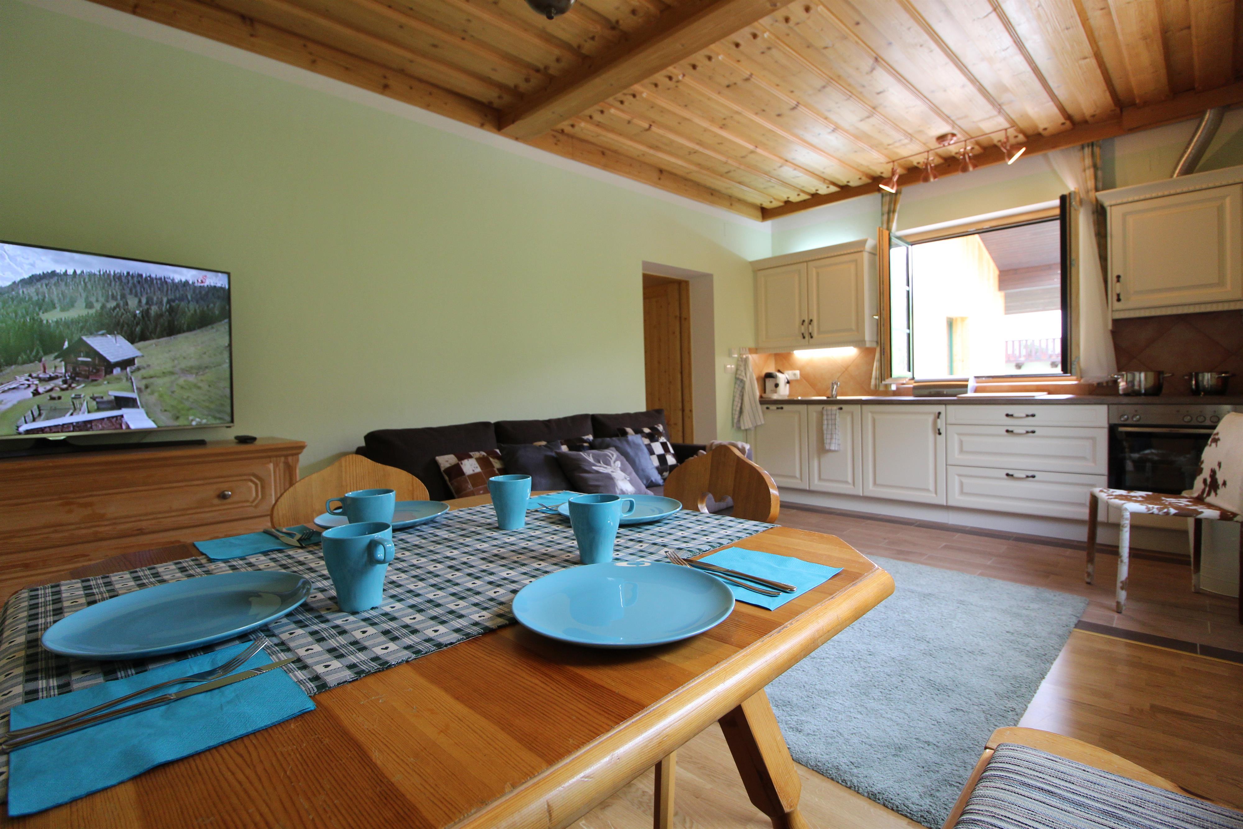 Ein paar Schritte vom Skilift und von den Supermärkten, unabhängige Wohnung in einem Zweifamilienhaus im ersten Stock, mit einem schönen Wohnzimmer mit voll ausgestatteter Küche (mit Geschirrspüler), 50 '' TV und großem Schlafcouch für zwei Personen, einem großen Doppelzimmer mit Balkon und Badezimmer mit Dusche und Infrarotsauna. Im Erdgeschoss am Eingang ein gemütlicher Abstellraum für Skier und einen Stiefelwärmer. Privater Garten und Parkplatz im Freien.