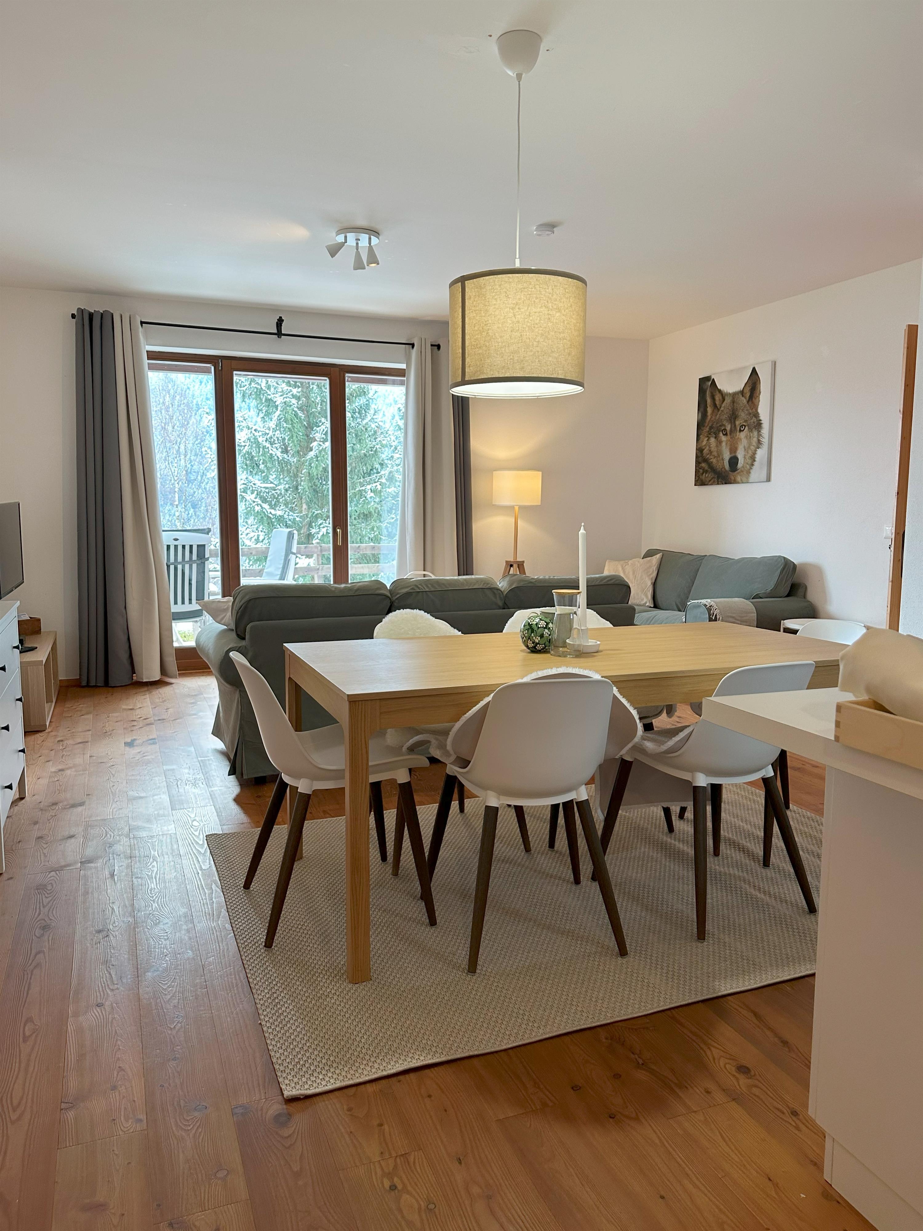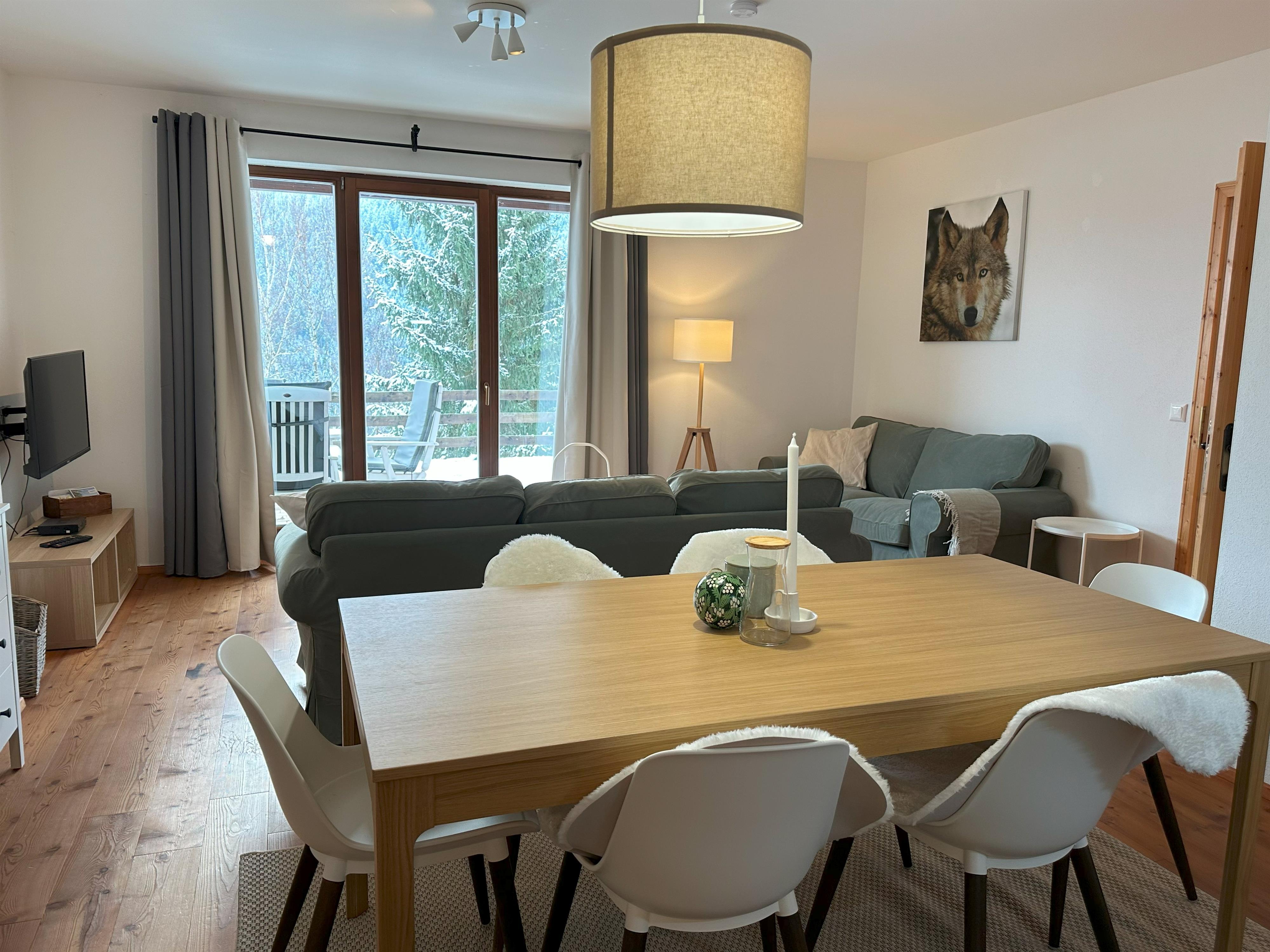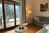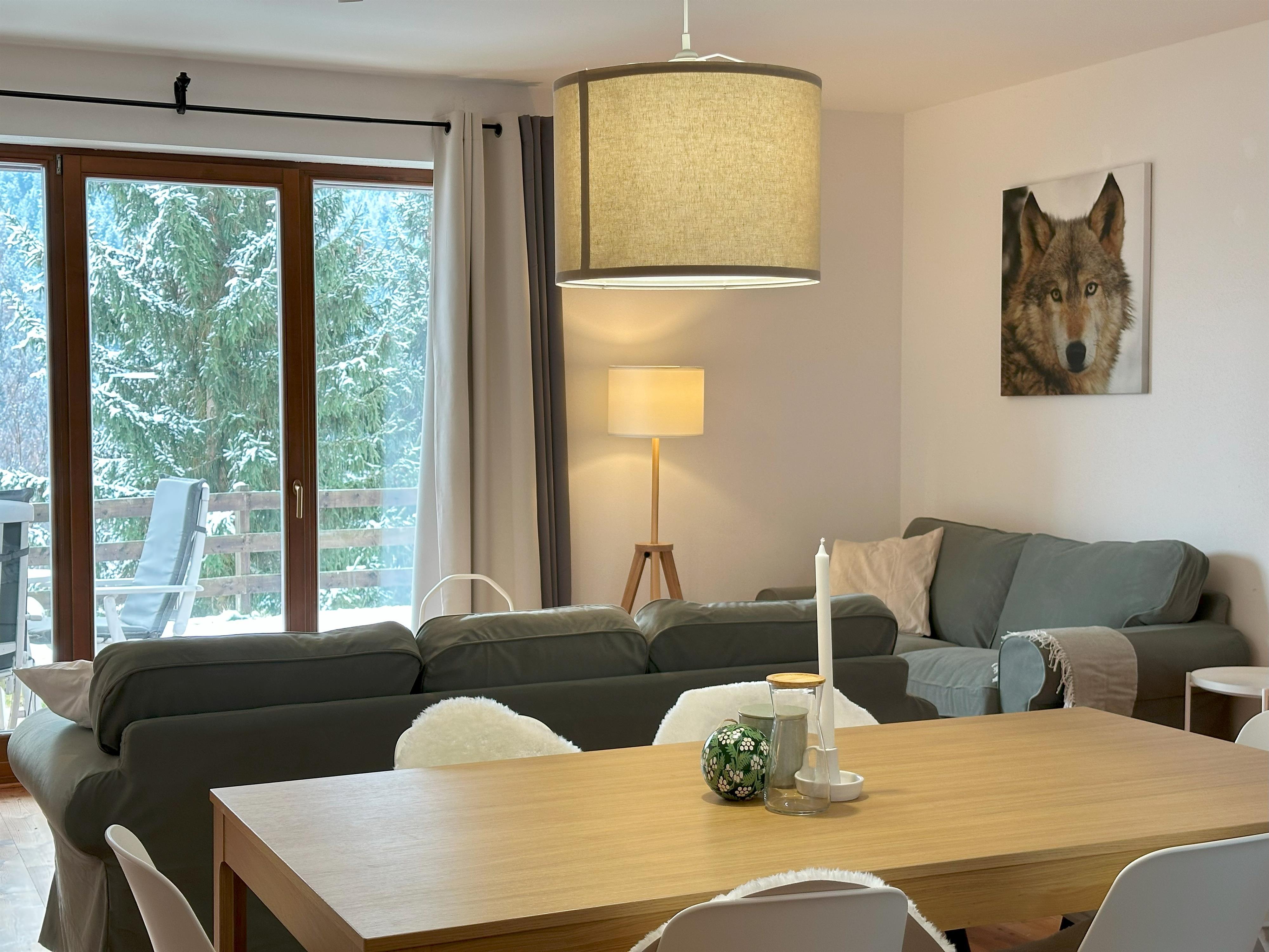 Moderne gemütliche Wohnung mit kleinem sonnigen Garten in Panoramalage, ca. 300m von den Skipisten entfernt.