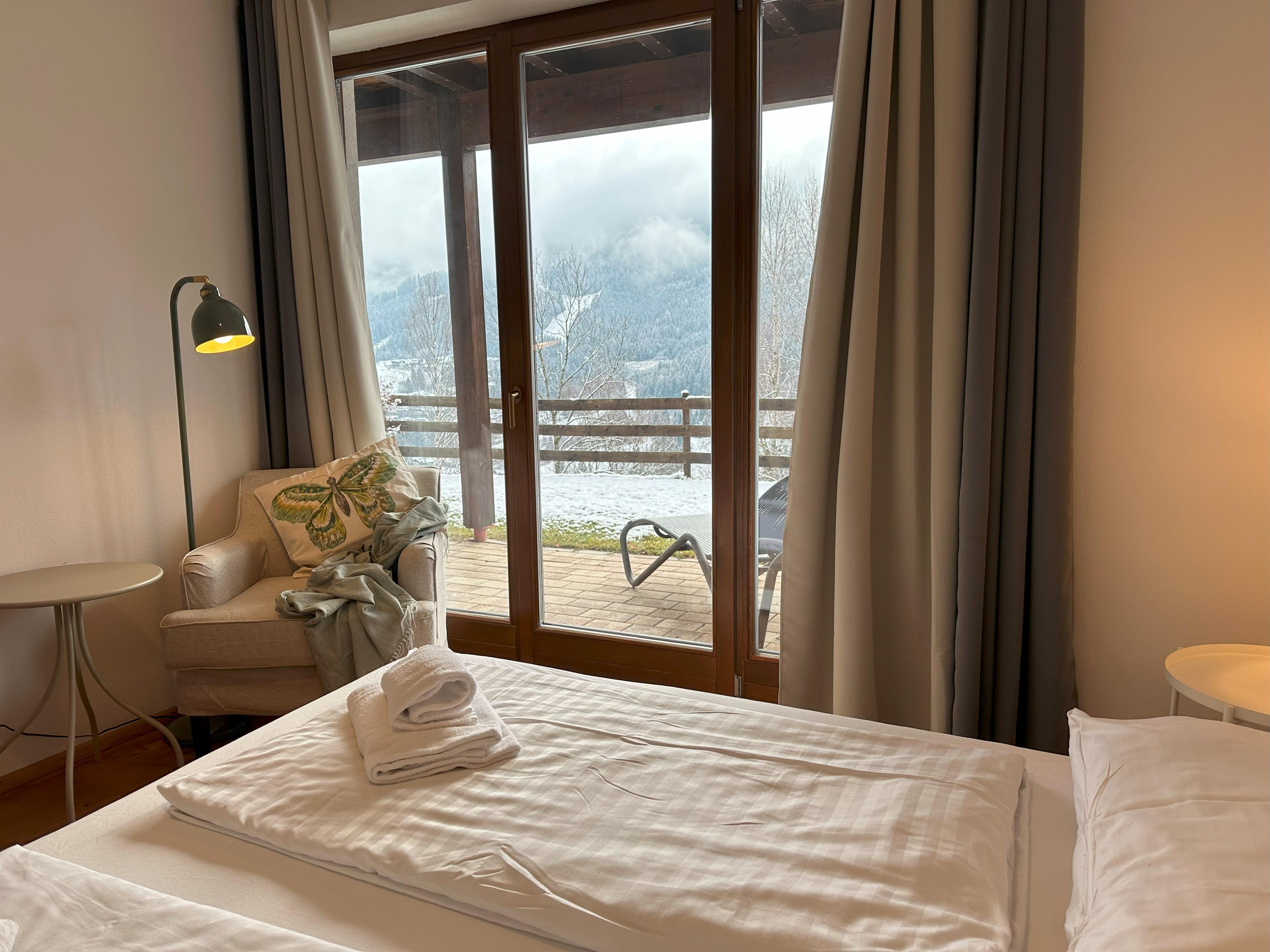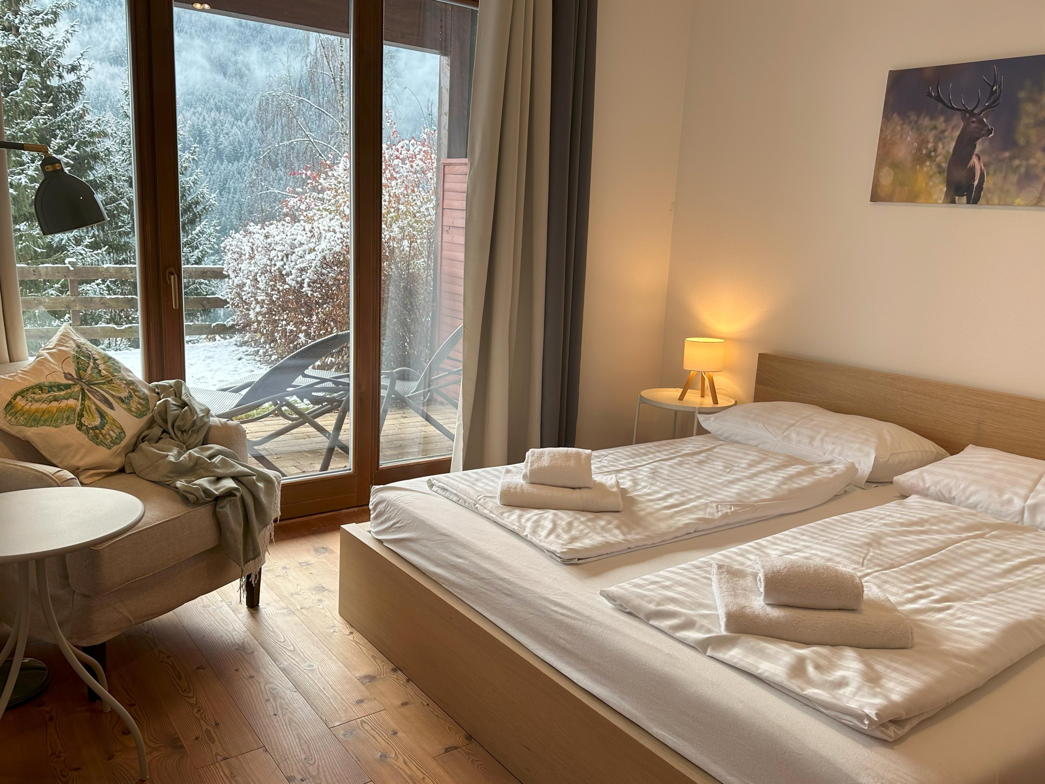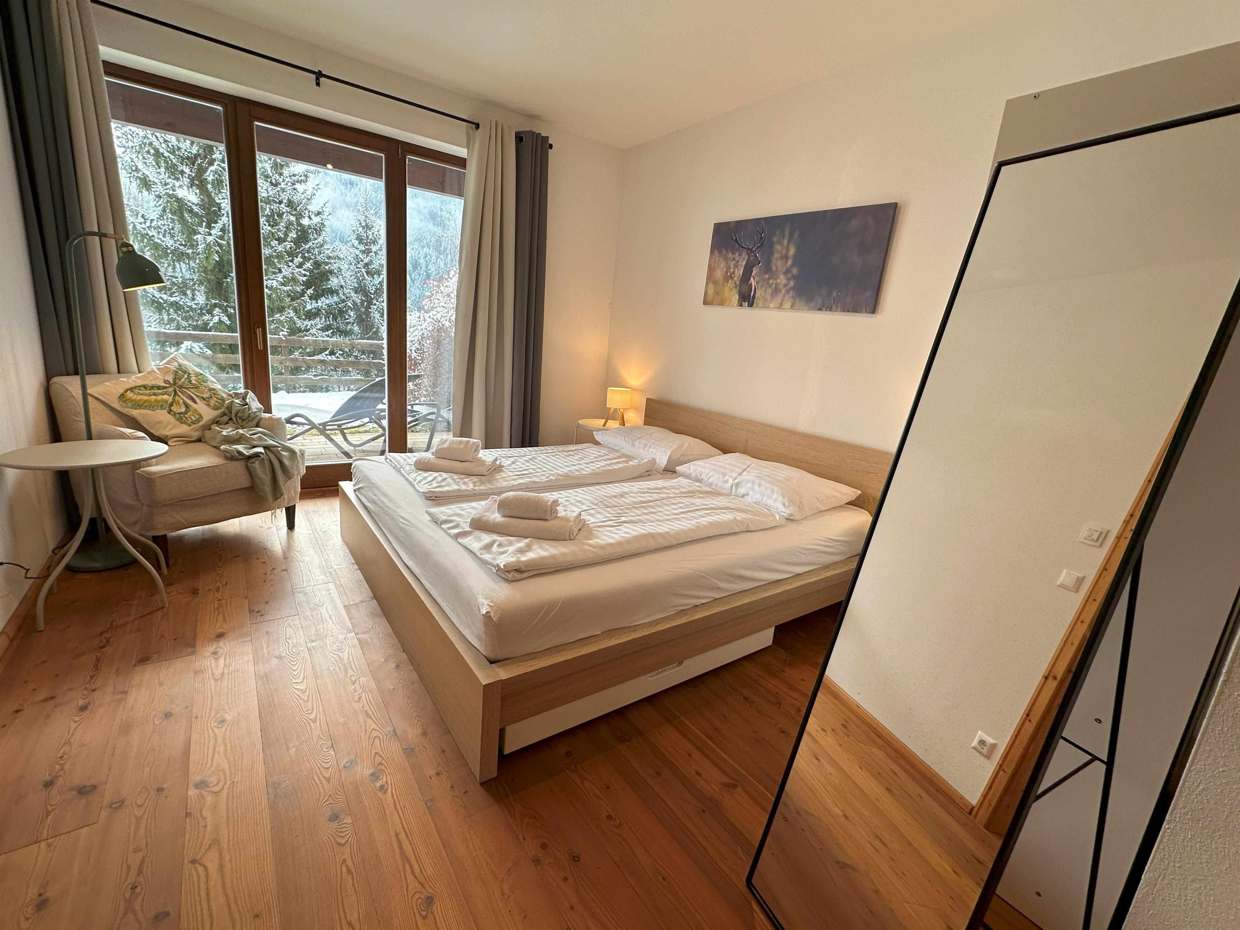 Moderne gemütliche Wohnung mit kleinem sonnigen Garten in Panoramalage, ca. 300m von den Skipisten entfernt.