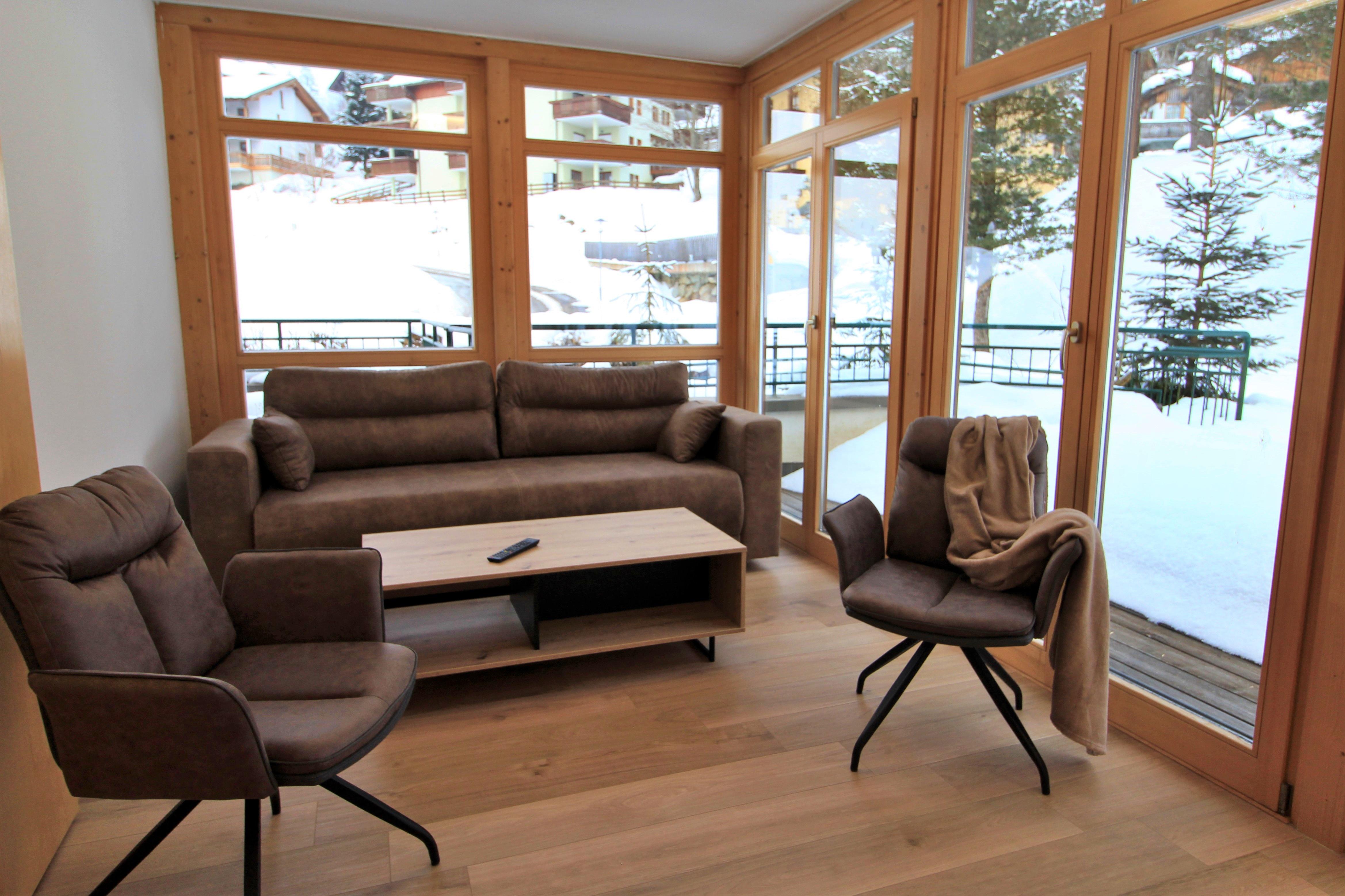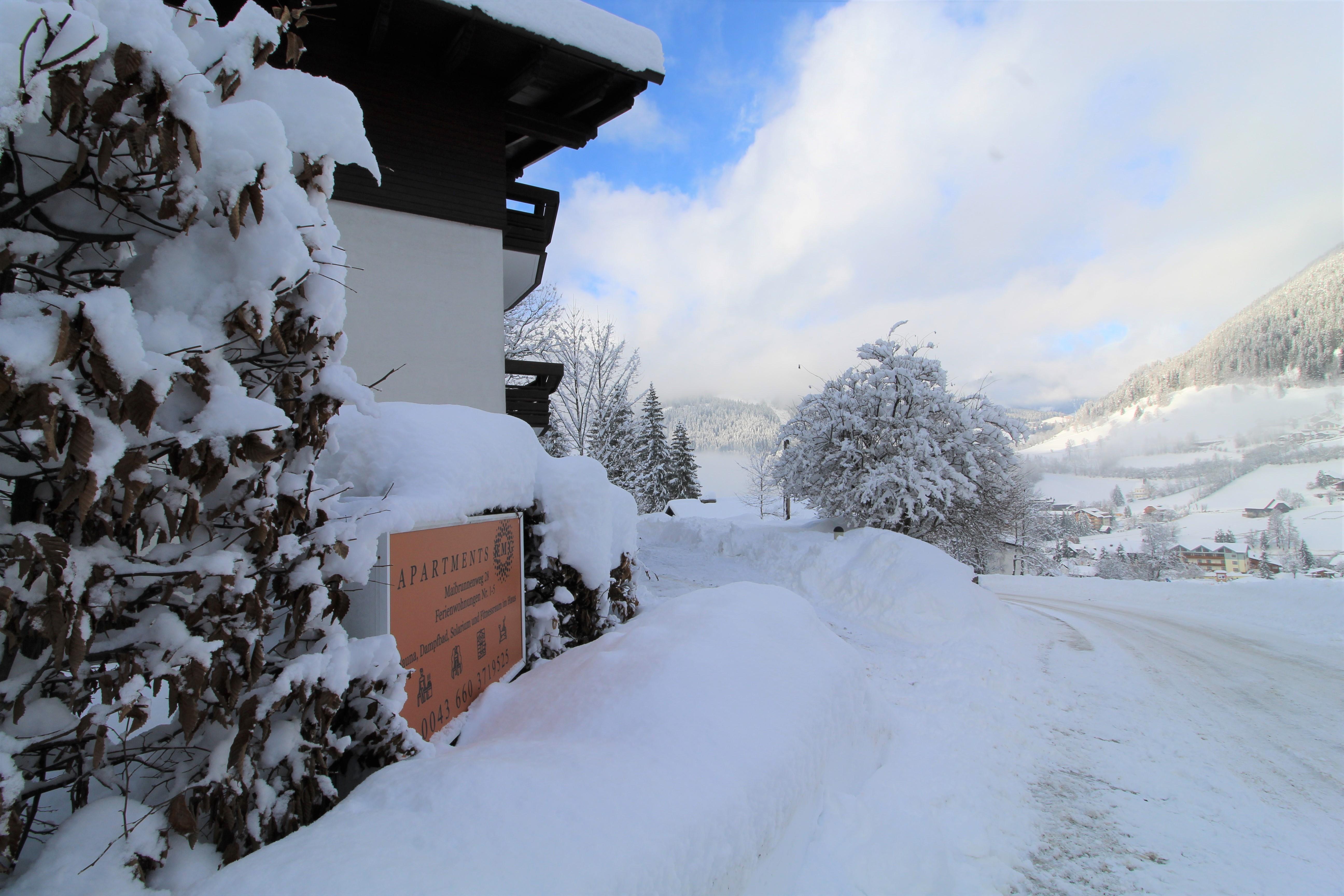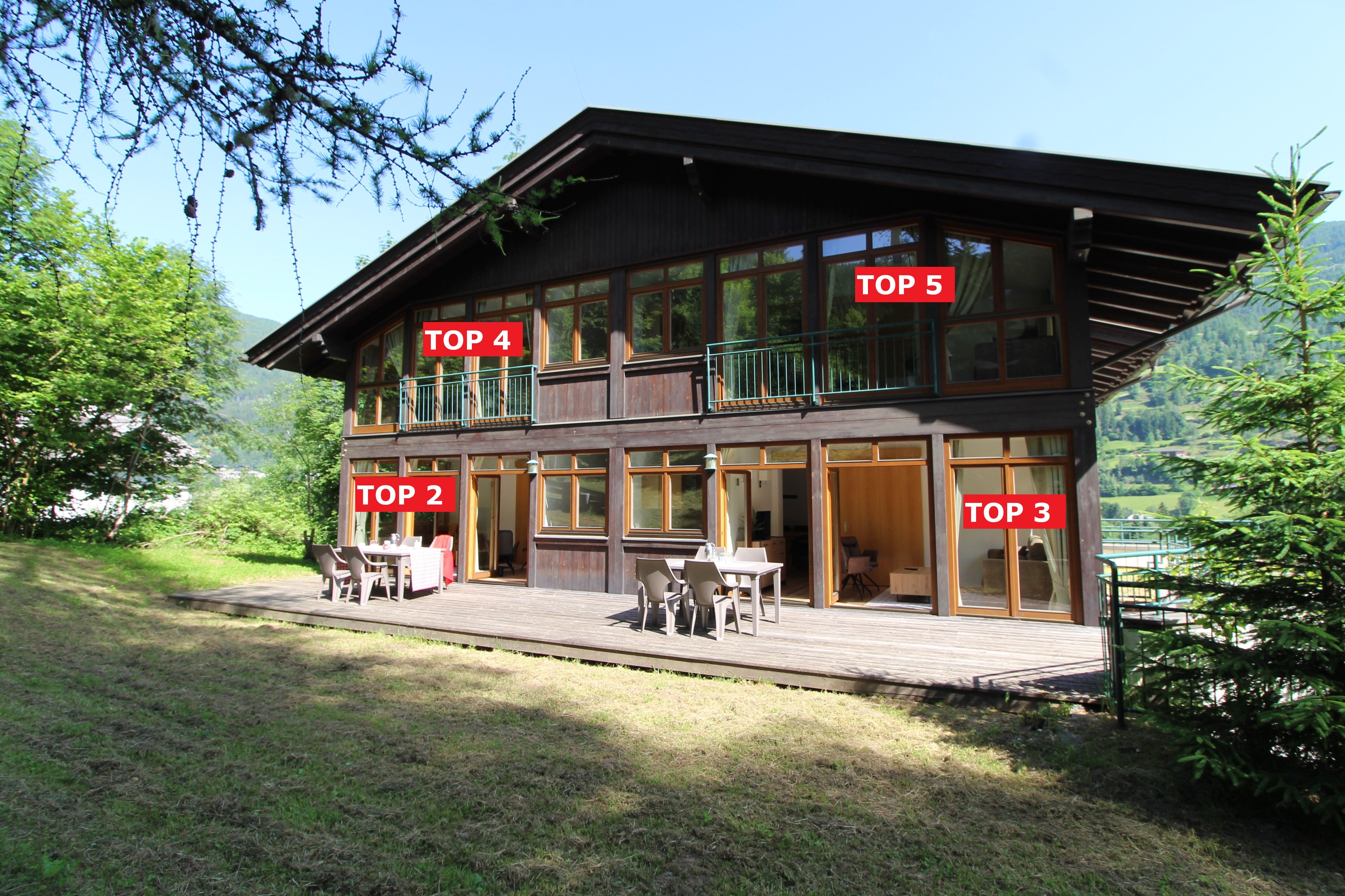 Haus mit 5 Wohnungen in panoramischer Lage. Die Skipiste ist gerade über der Strasse.