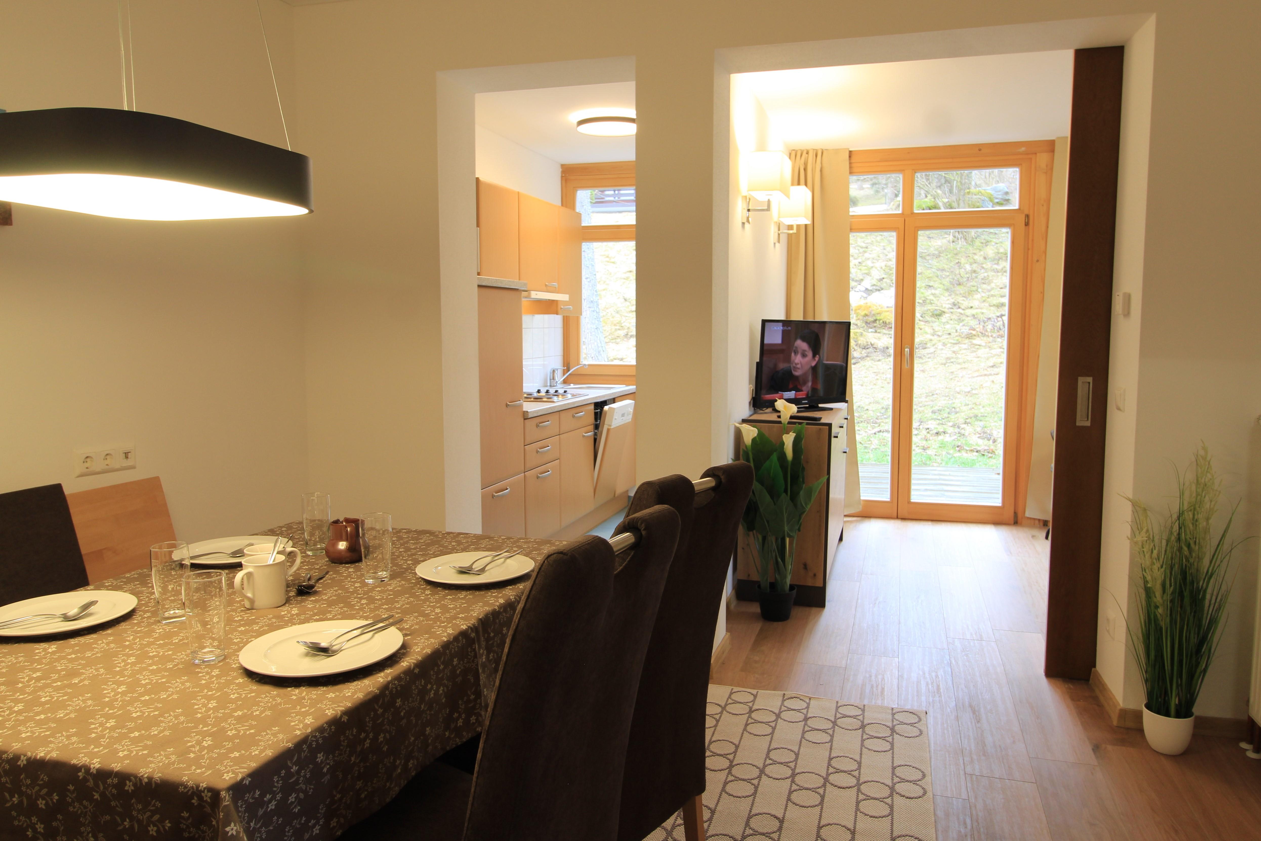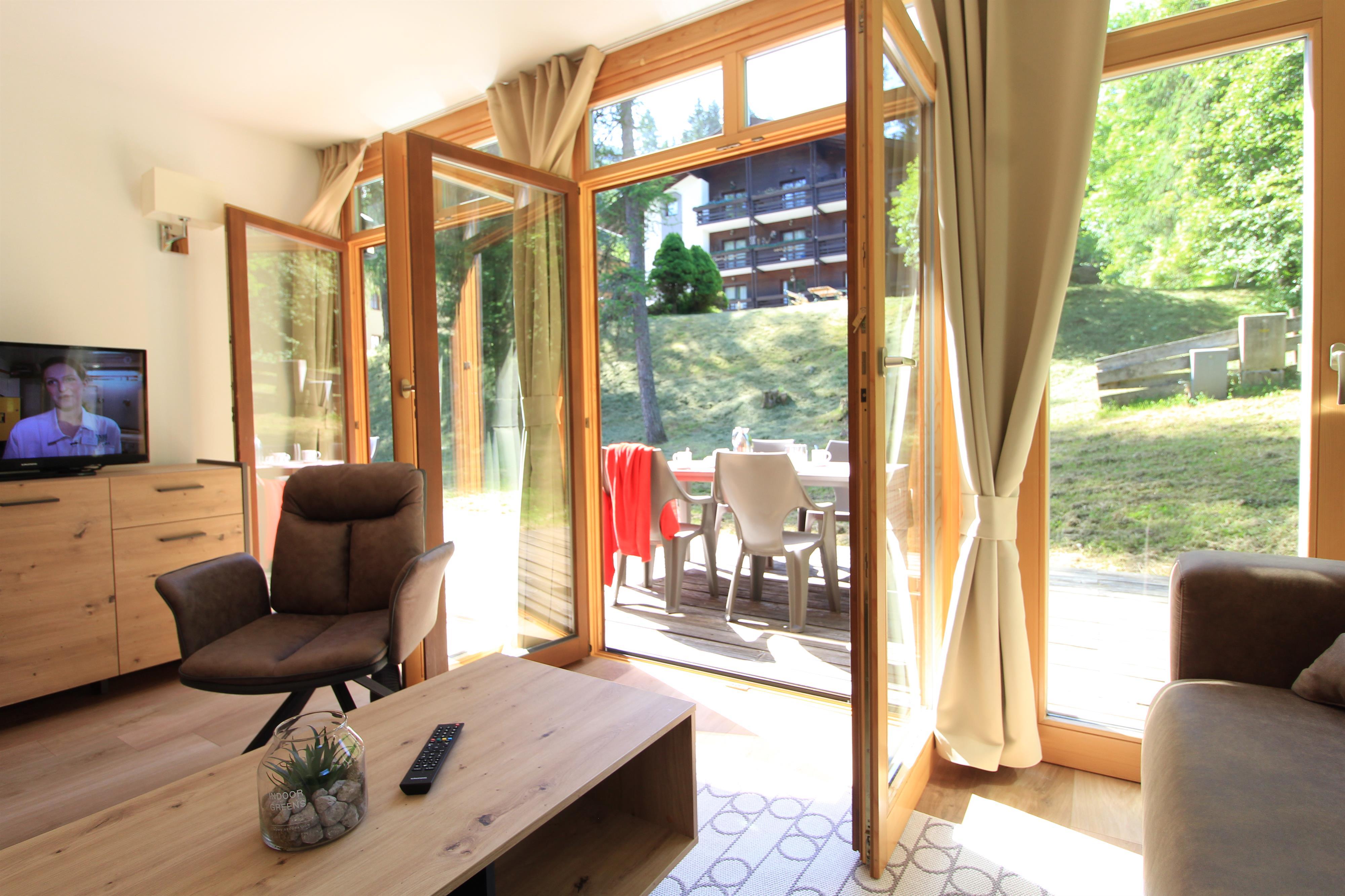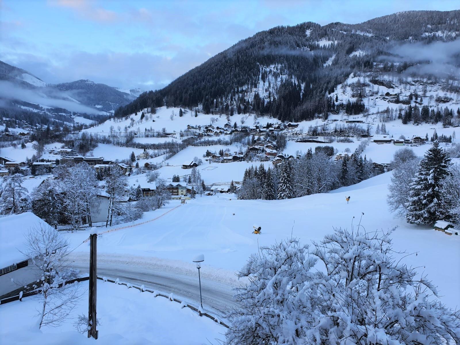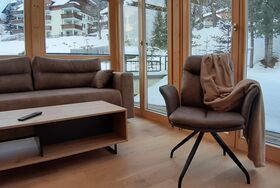 Haus mit 5 Wohnungen in panoramischer Lage. Die Skipiste ist gerade über der Strasse.