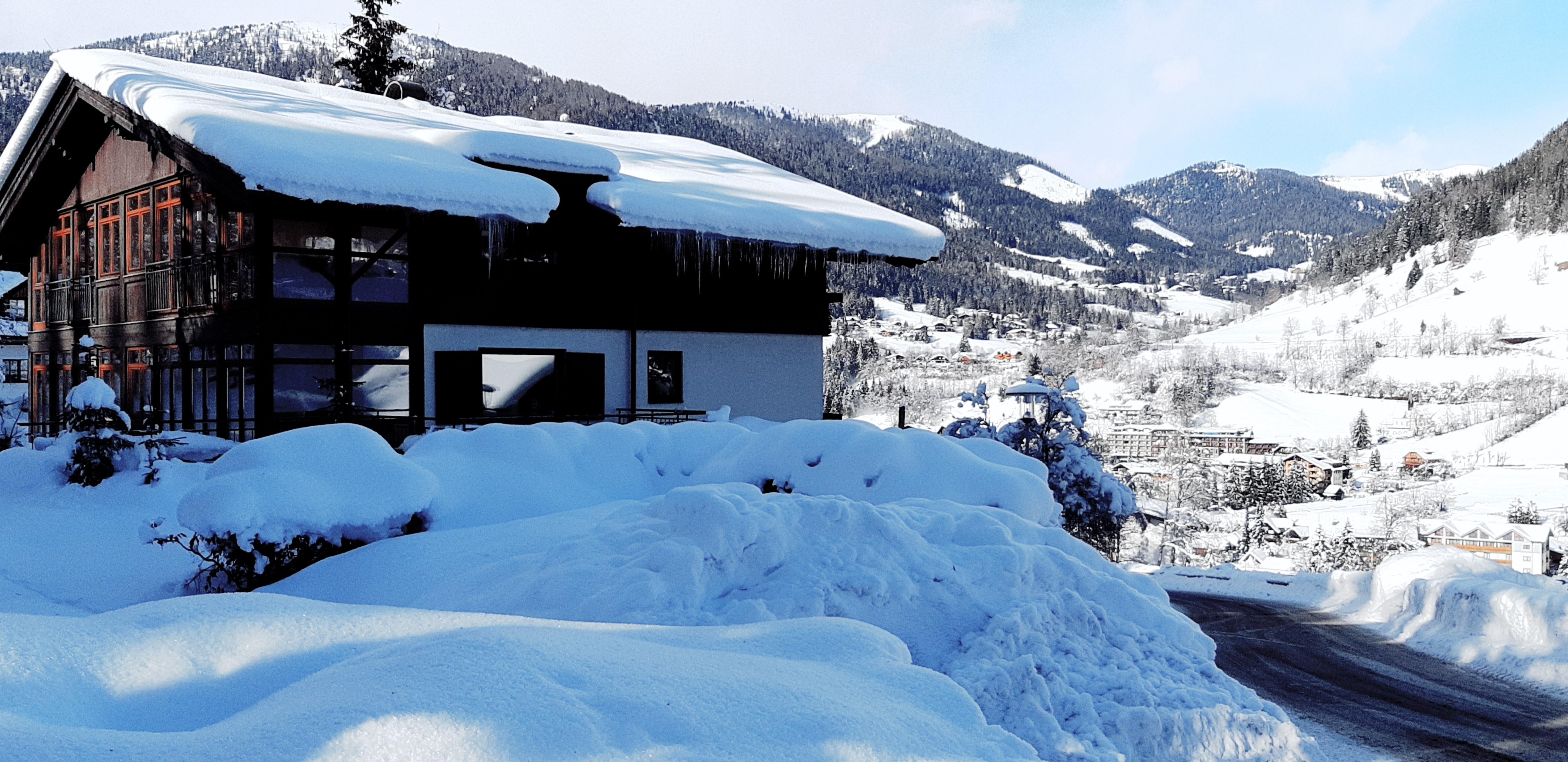 Haus mit 5 Wohnungen in panoramischer Lage. Die Skipiste ist gerade über der Strasse.