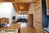 Hervorragende komfortable Wohnung auf zwei Ebenen. Am Eingang eine Garderobe mit Skiraumecke und Schuhwärmer sowie ein WC, ein Doppelzimmer mit Balkon und en-suite Bad mit Dusche. Eine Treppe führt in die obere Ebene, wo in einem großen offenen Raum die völlig ausgestattete Küche, der Esstisch und der Ruhebereich mit Sofa und TV Platz finden. Im Schlafbereich ein Schlafzimmer mit Doppelbett, ein Badezimmer mit Jacuzzi, Dusche und Waschmaschine, eine separate Toilette und das Kinderzimmer, mit einem Einzelbett, das zum Doppelbett wird, und einem wunderschönen Zwischengeschoss zum Spielen. Drei Außenparkplätze.