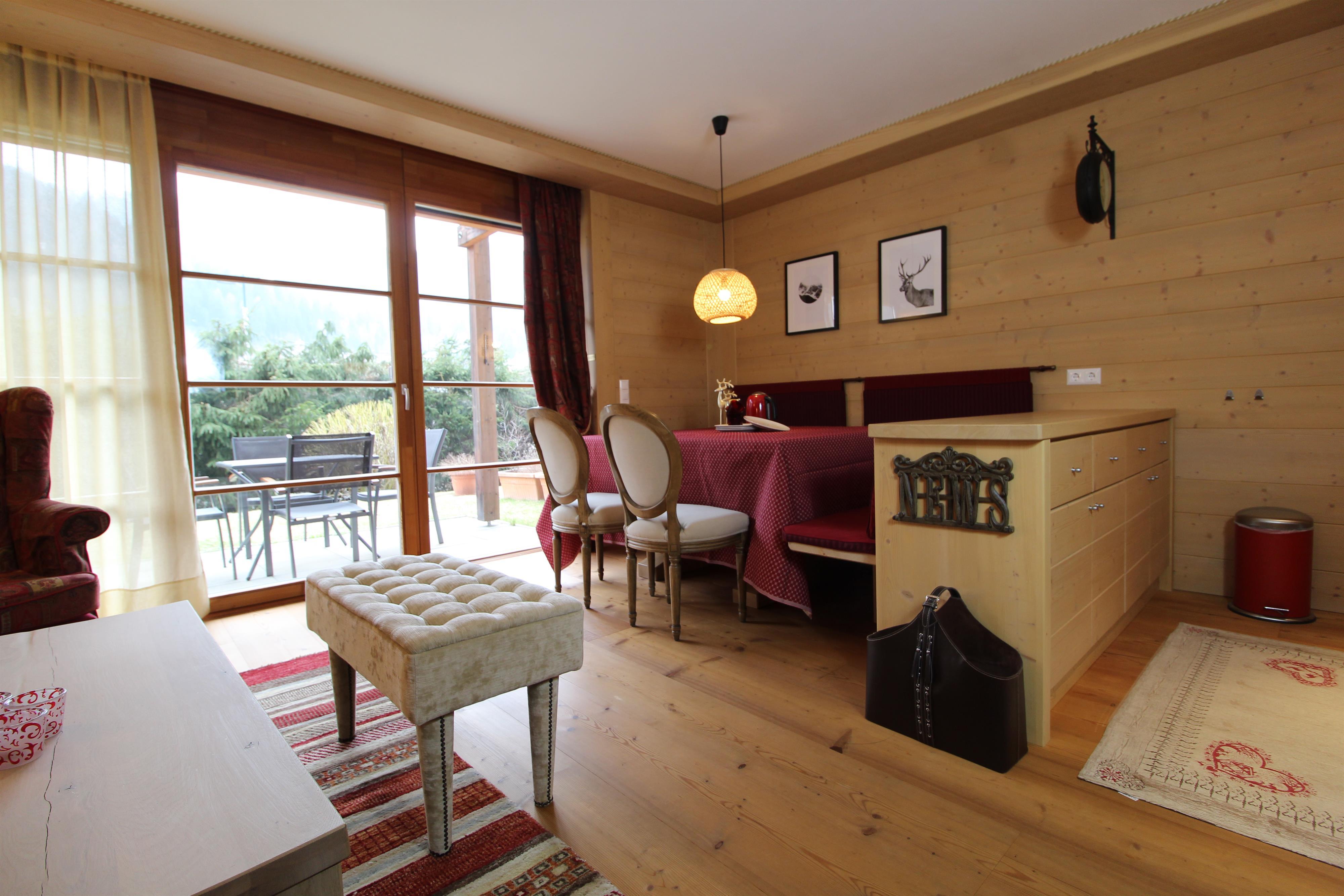 Schöne Wohnung im Erdgeschoss, 1 km von Römerbad Therme und Kaiserburg Seilbahn entfernt. Sehr warm und einladend dank der umfangreichen Verwendung von Naturholz. Ein Schlafzimmer mit Doppelbett, eines mit 3 Einzelbetten, ein Badezimmer mit Badewanne, eine Toilette mit Waschmaschine, ein helles sonniges Wohnzimmer und eine Küche mit Backofen und Geschirrspüler. Außenbereich und kleiner Garten. Parkplatz in der Garage und sicherer Abstellraum für Sportgeräte und Fahrräder. Skibus Haltestelle 50 m von der Haustür.