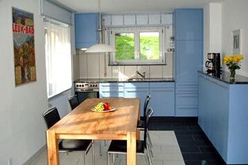 3-Zimmerwohnung: renoviert, oberste (3.) Etage, 2 Zweibettzimmer, Wohnzimmer, offene Küche mit Geschirrspüler, Bad/WC, Eingang, grosser Südbalkon, Radio, TV, DVD, gratis W-Lan. Garage inklusive. Nichtraucher Wohnung.