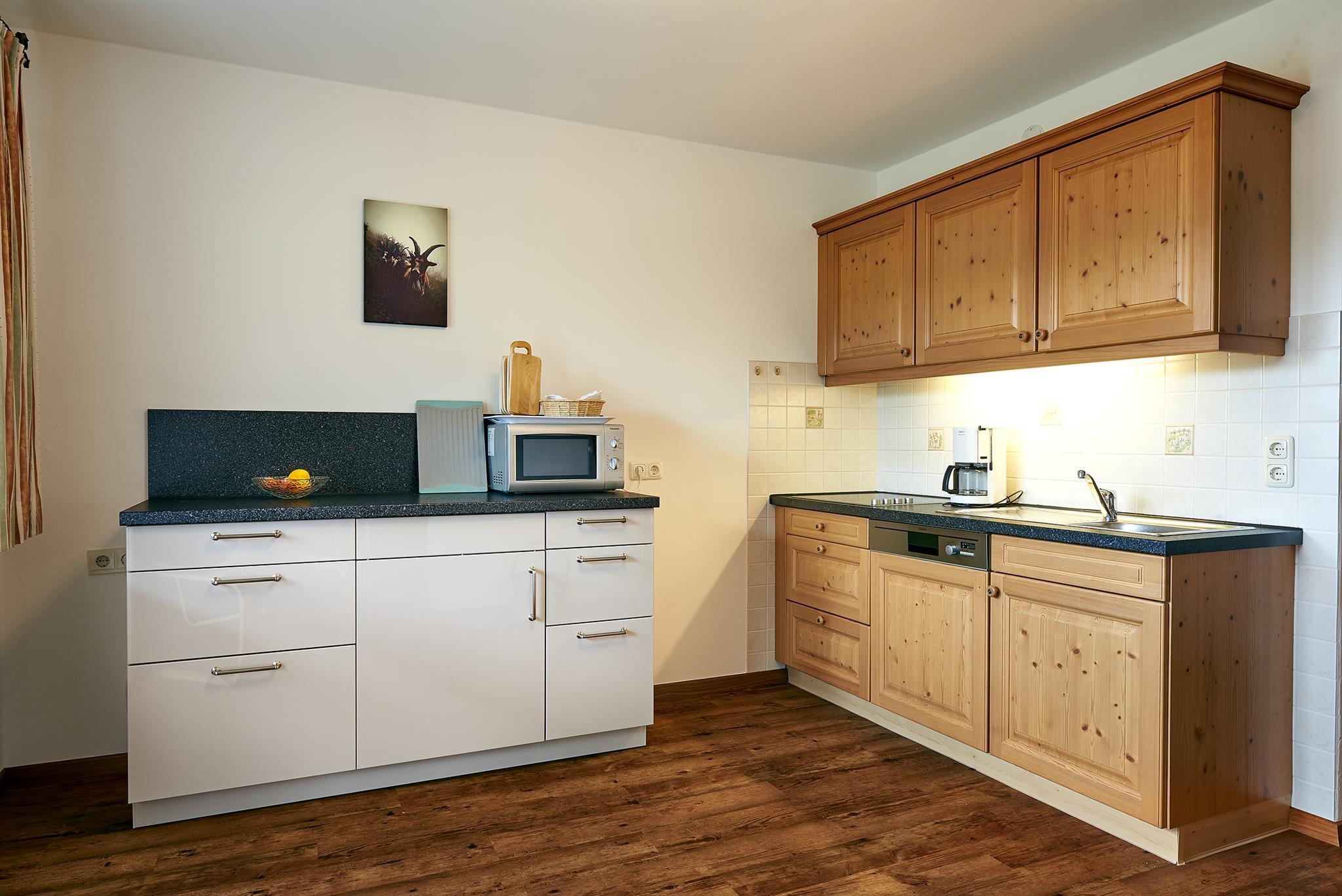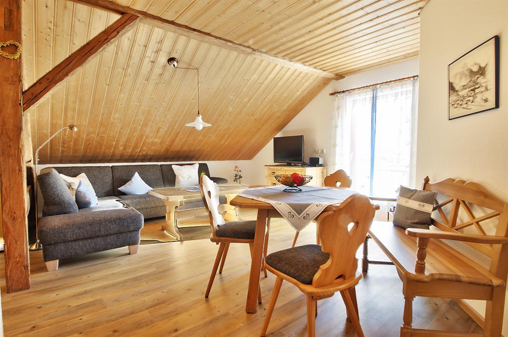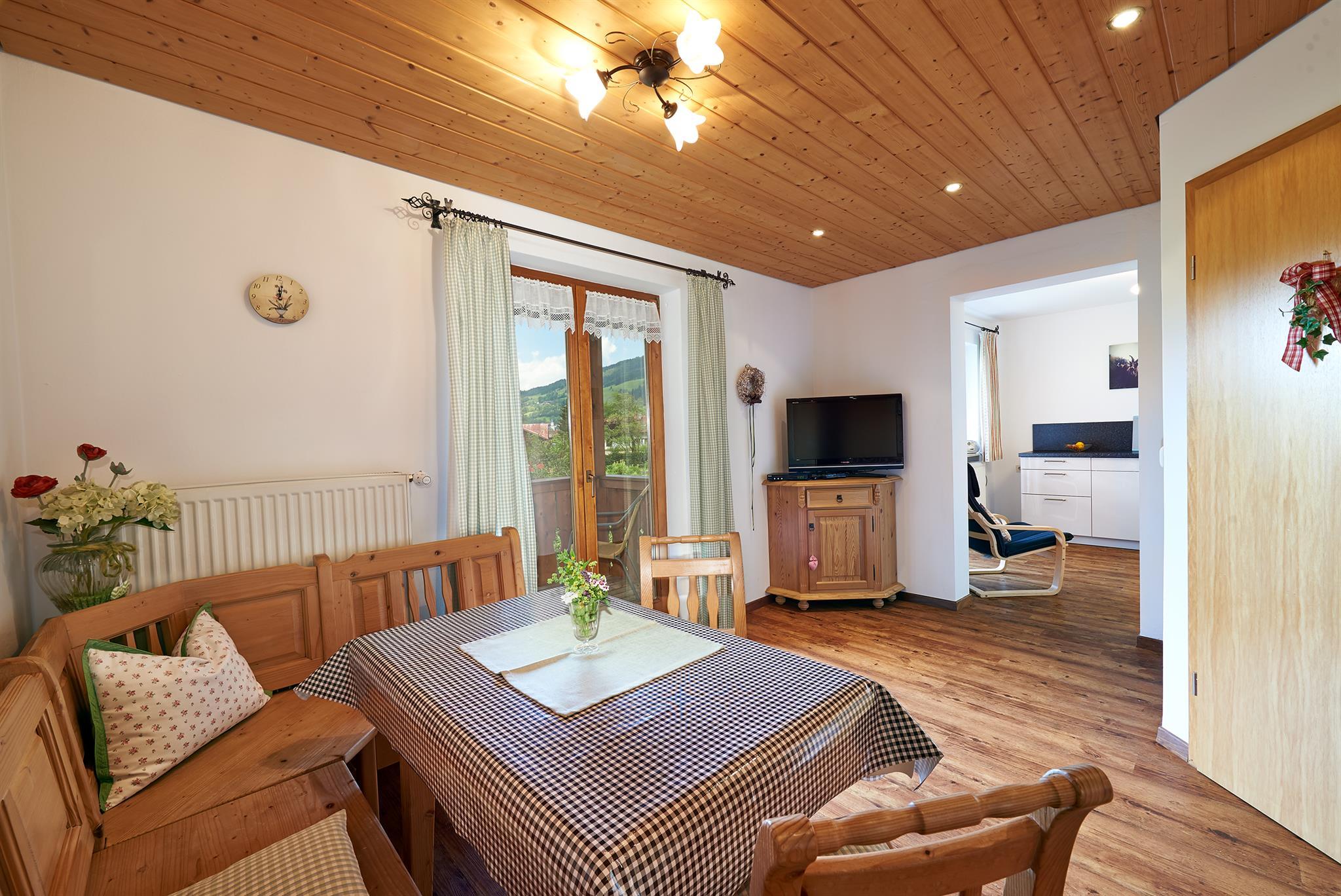 Ferienwohnung für 2 Personen: • großer überdachter Südbalkon mit Bergblick • separates Schlafzimmer mit Doppelbett • ein weiterer Raum zum getrennt Schlafen ist in der Wohnung vorhanden • Bad mit Dusche/WC, Fön, Kosmetikspiegel, Hand –und Duschtücher mit Wechsel nach Bedarf • Betten in Komforthöhe • gemütlicher Wohnraum mit Essecke • Sat-TV, Radio, CD-Player • DSL-Internetzugang (WLAN) • Küchenecke mit Mikrowelle, 4er Ceran-Kochfeld, Kühlschrank mit Gefrierfach, Spülmaschine • Nichtraucher