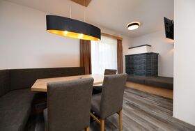 Das neu renovierte Appartement überzeugt mit ca. 55 m² Wohnfläche, hochwertiger Ausstattung und gemütlichem Ambiente. Die großzügige Wohnküche mit traditionellem Kachelofen, konfortabler Liegefläche, Flat-TV und eingebauter Essecke bildet das Herzstück der Wohnung – ein Ort zum Zusammensitzen, Entspannen und Genießen. Die voll ausgestattete Küchenzeile bietet alles für einen unabhängigen Aufenthalt: Spülmaschine, Kühlschrank, Cerankochfeld, Wasserkocher sowie Kaffeevollautomat. 2 Doppelzimmer mit Flat-TV und 2 Badezimmer mit Dusche/WC und Haarföhn. Privater Balkon zur Südseite und Nordseite mit herrlicher Aussicht. Ein stilvolles Zuhause auf Zeit – ideal für Paare, Familien oder Freunde, die großzügig wohnen und gleichzeitig Privatsphäre genießen möchten.