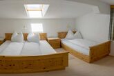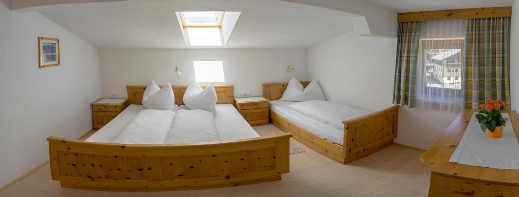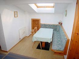 Appartement Himmelreich: Vollholzmöbel aus Zirbenholz, Größe: ca. 60 m², Diele mit Essbereich, Kochnische, Dreibettzimmer, Wohnzimmer mit ausziehbarer Couch (für 2 weitere Personen), SAT-TV und Radio und Safe, Badezimmer mit Dusche/WC und Föhn, Parkettboden, Südbalkon, auf der 1. Etage, Benützung der Panoramasauna inklusive, Aufenthaltsraum und Gästeküche zur Mitbenützung in Joggls Stube