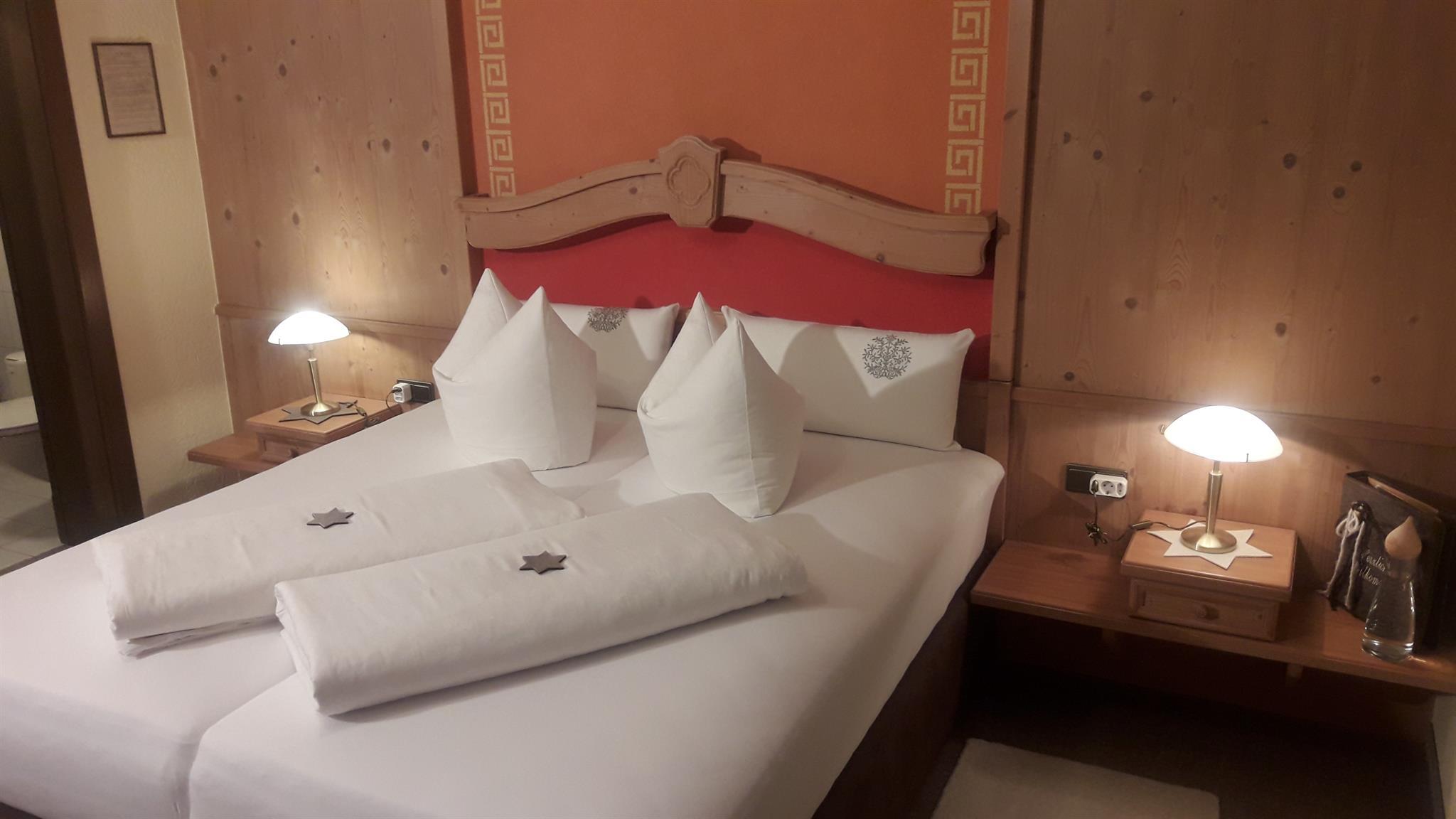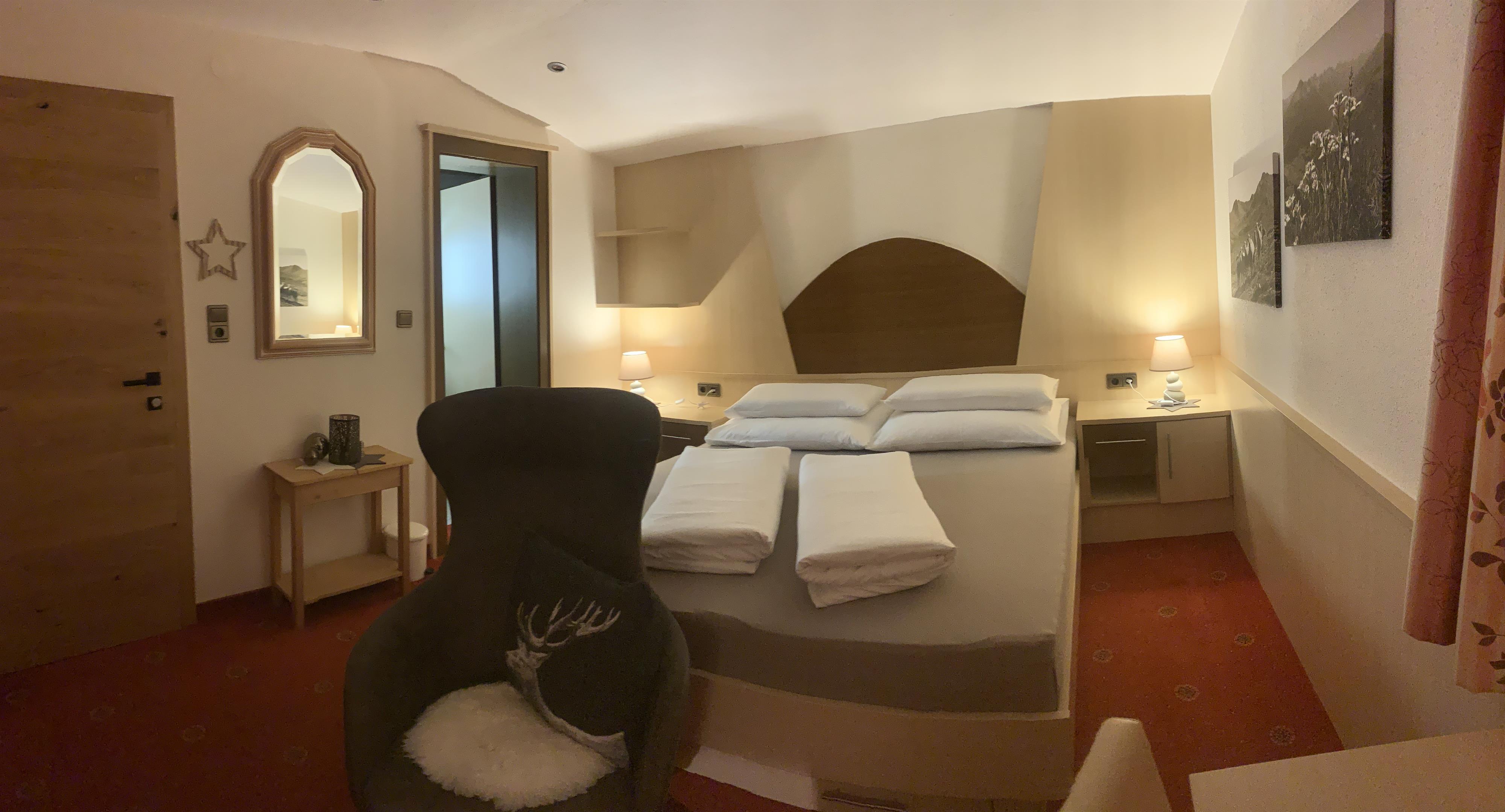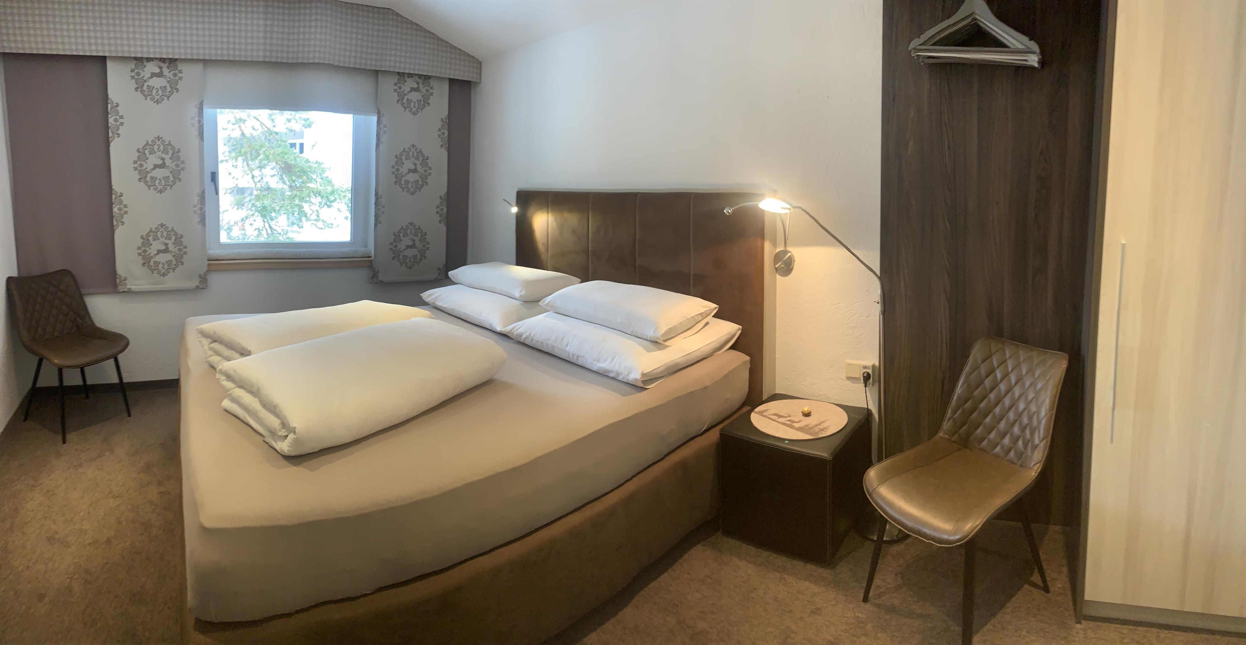 Unser Standard-Doppelzimmer mit ca. 20 m² ist im Landhausstil eingerichtet und verfügt über Flat-Sat-TV, ein Badezimmer mit DU/WC, einen Haarföhn, sowie einen Kühlschrank und eine Kaffeemaschine.