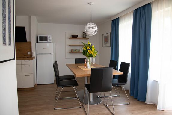 Unser Gästehaus mit 5 liebevoll eingerichteten und neu renovierten Apartments, mit Terasse oder Balkon, inmitten einer großzügigen, gepflegten Gartenanlage liegt an der sonnigen Seite des Magdalenen Sees.
