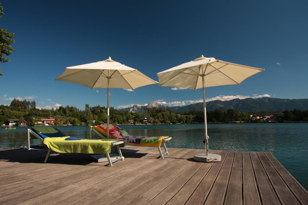 Unsere Badestrand hat einen atemberaubenden Blick auf Kärntens Bergwelt. Vielleicht läd Sie dieser Blick auf die Karawanken und die Julischen Alpen zu einer Bergwanderung ein. Anschließend erlauben bequeme Liegen mit Sonnenschirmen rasches Abschalten. Sie werden von den atemberaubenden Seestimmungen begeistert sein. Professionelle physiotherapeutische Beratung in unserem neuen Yogaraum, sowie ein Tretboot und ein Kinderspielplatz stehen für Sie bereit.