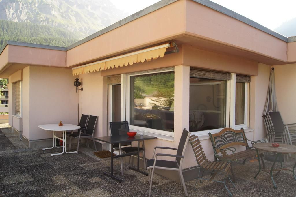 3-Zimmer-Attika-Wohnung: Grosse sonnige Dach-Terrasse (102m2) mit Panoramablick in südwestlicher Richtung, Wohn- / Esszimmer, Radio, TV, DVD, gratis W-LAN, separate Küche mit Geschirrspüler und Mikrowelle, 1 Zimmer mit Doppelbett, 1 Zimmer mit 2 Einzelbetten, Bad/WC, Bidet. Zentrale Lage. In der Nähe: Rehazentrum, Thermalbäder, Torrent-Luftseilbahn, Busbahnhof, Restaurants und Lebensmittelgeschäfte. Nichtraucherwohnung! Haustiere nicht erlaubt!