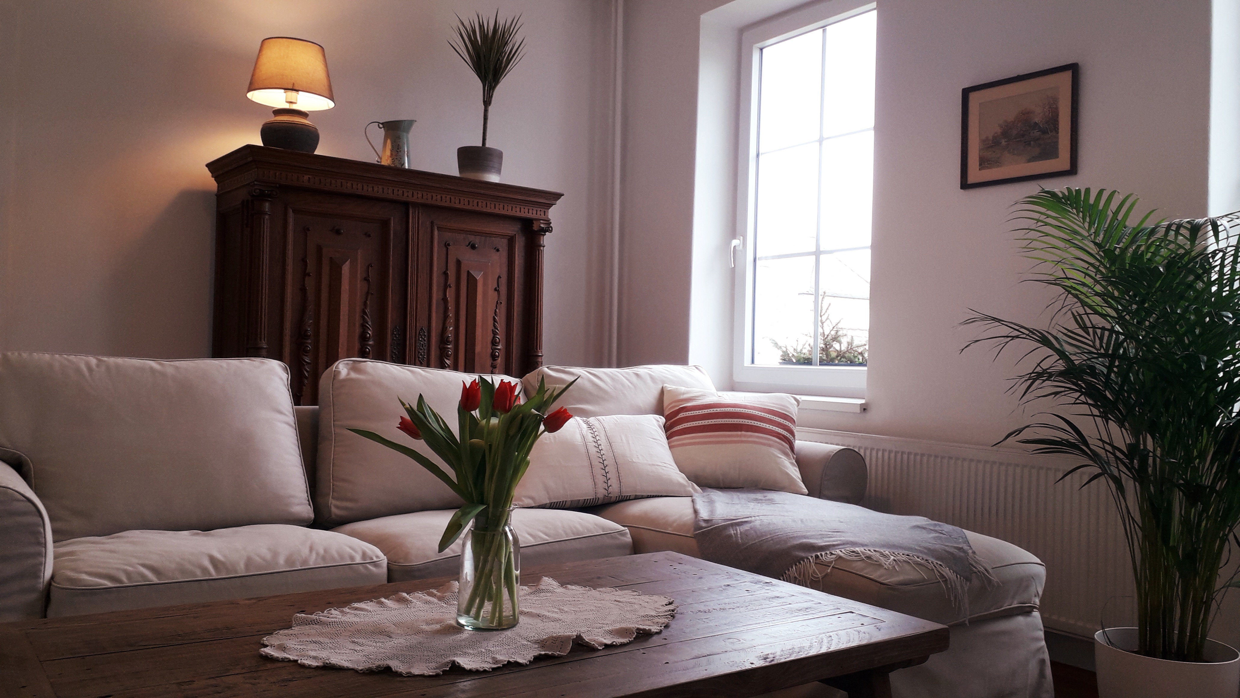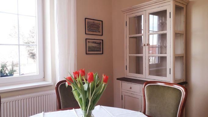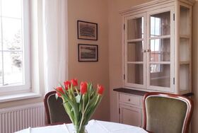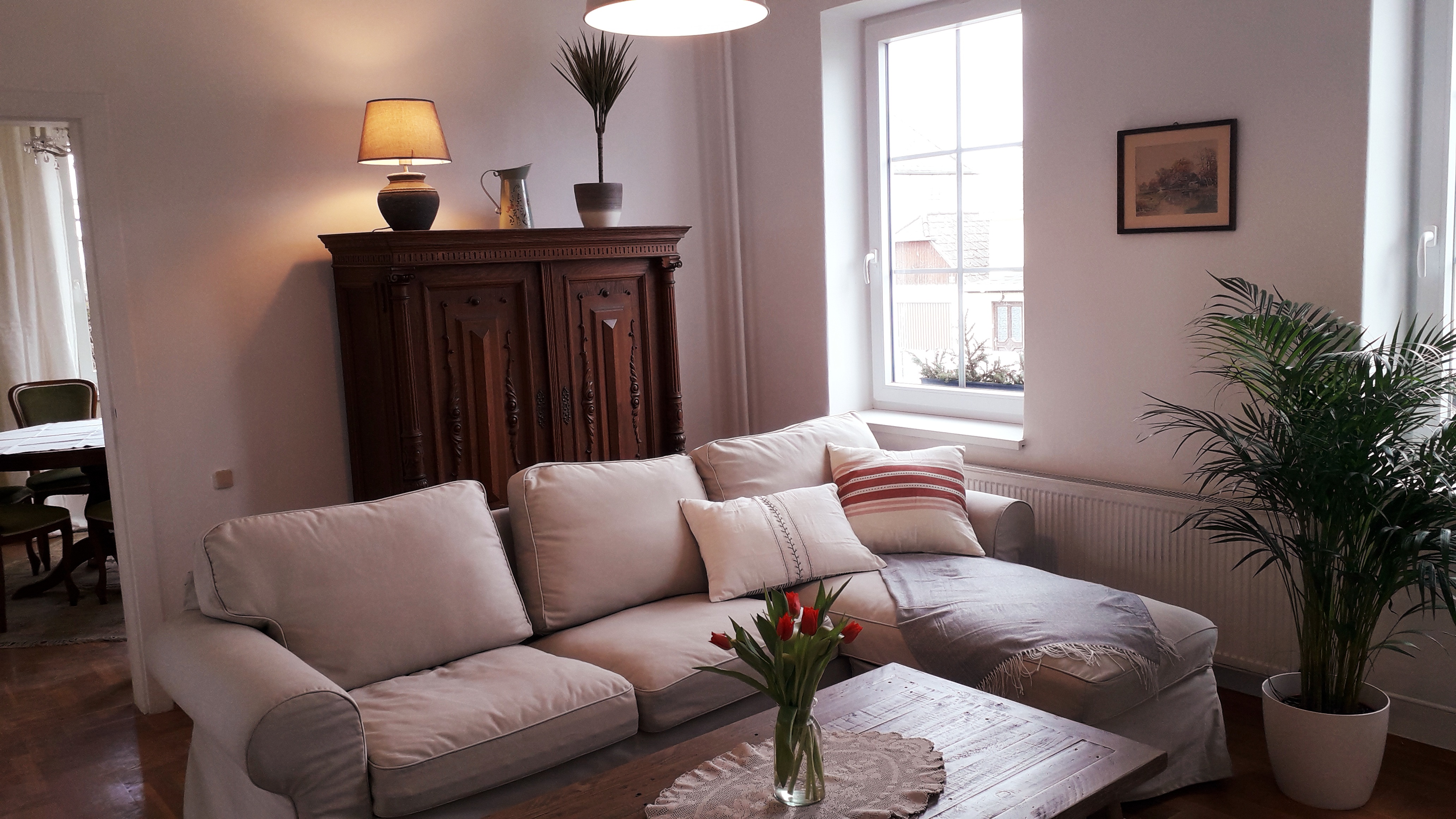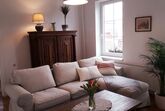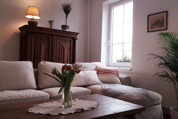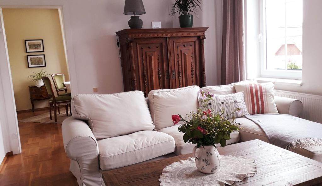 Gleich gegenüber der Küche liegen das gemütliche Wohnzimmer und ein Speisezimmer.