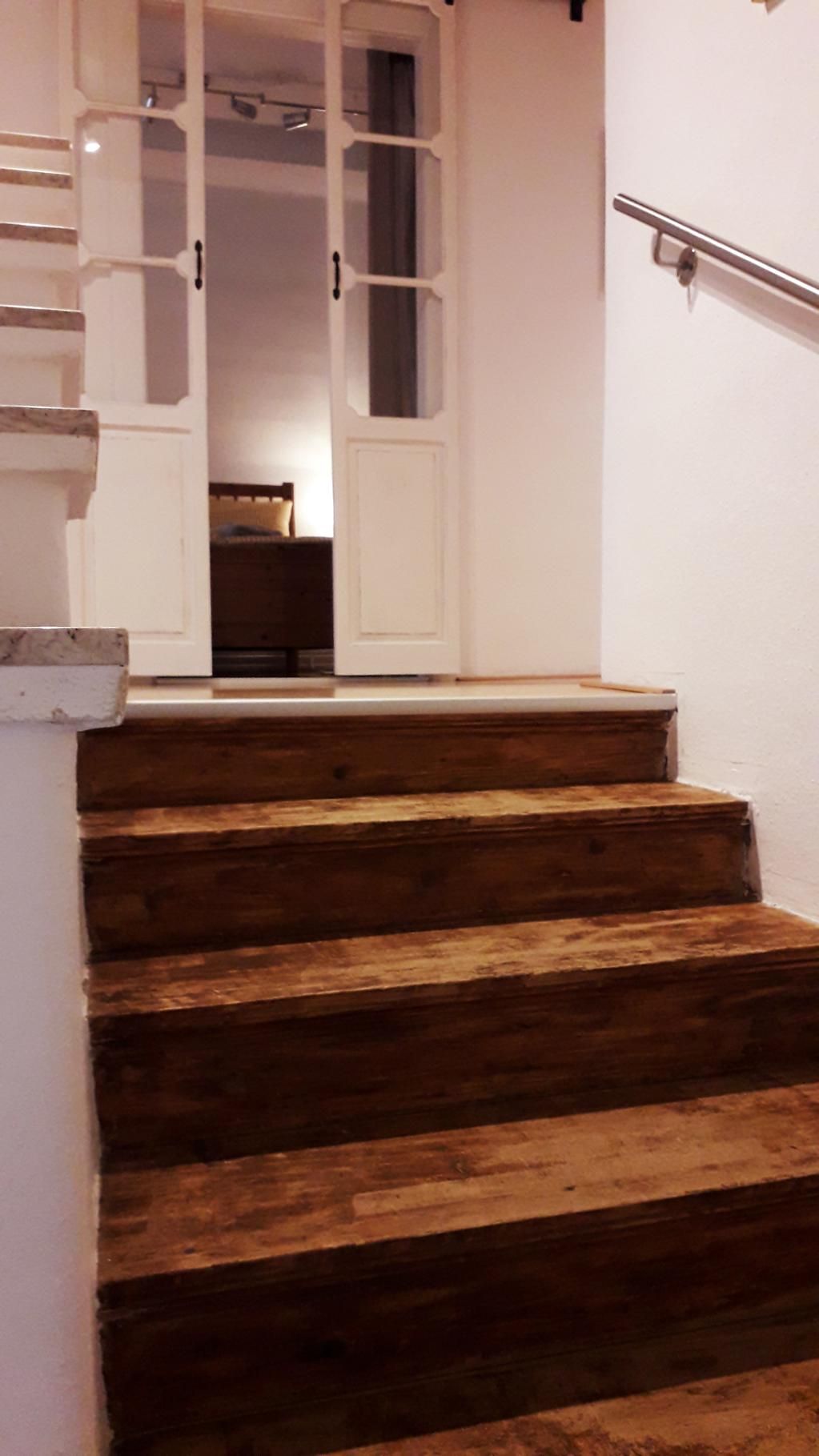 Insgesamt 3 Schlafzimmer liegen in der oberen Etage (3 Doppelbetten), außerdem ein weiteres WC mit Waschbecken und Spiegel.