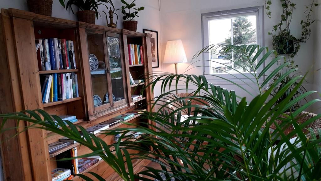Ein Wintergarten im 1.Stock lässt sich gut nutzen, um gemütlich zu lesen.