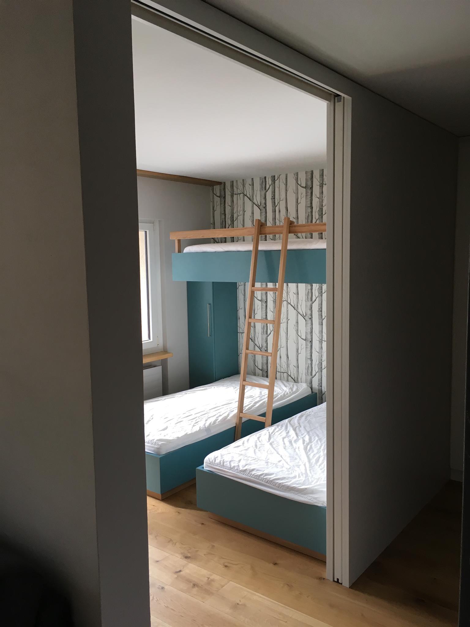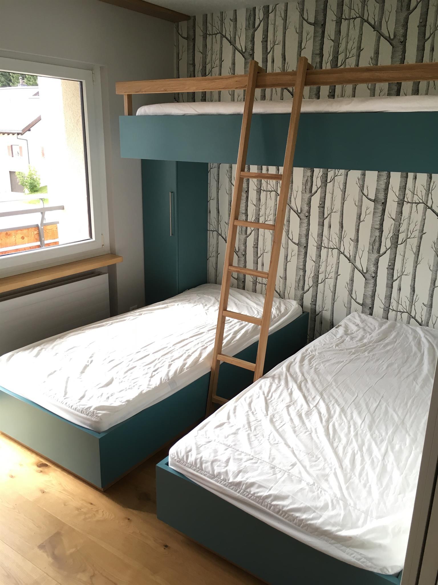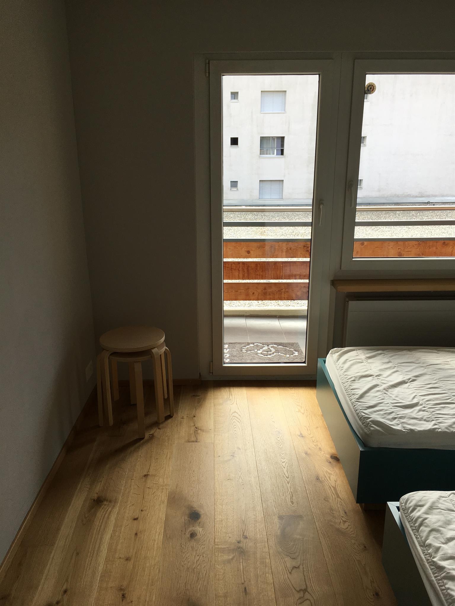 1.5 Zimmer Ferienwohnung in einem Mehrfamilienhaus im 2. Stock, direkt an der Sportbushaltestelle und neben dem Volg-Einkaufsladen.