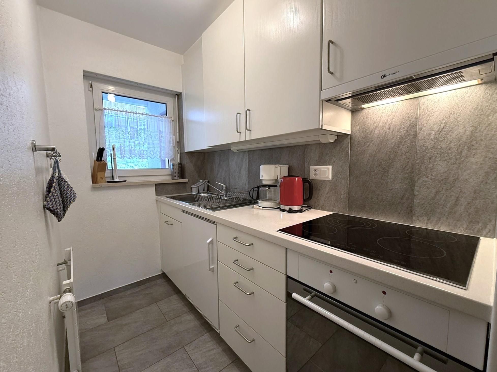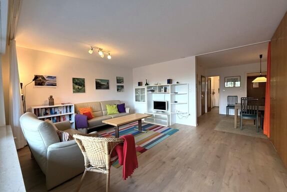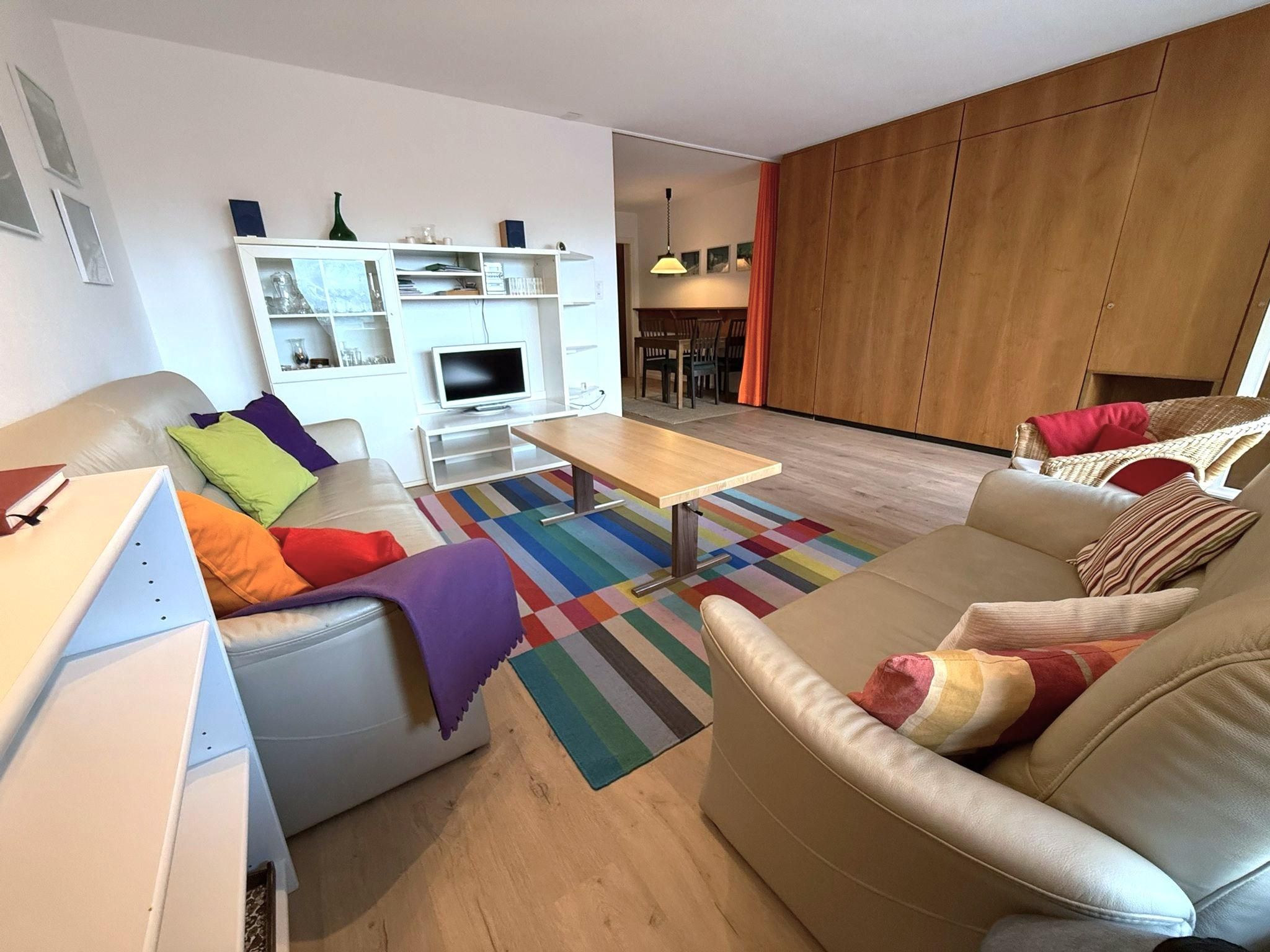 2-Zimmerwohnung: Wohn-/Esszimmer mit 2 Betten, Küche, 1 Dreibettzimmer, Bad/WC, Balkon, TV, Radio. Garage inklusive. Nichtraucherwohnung.