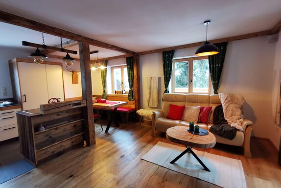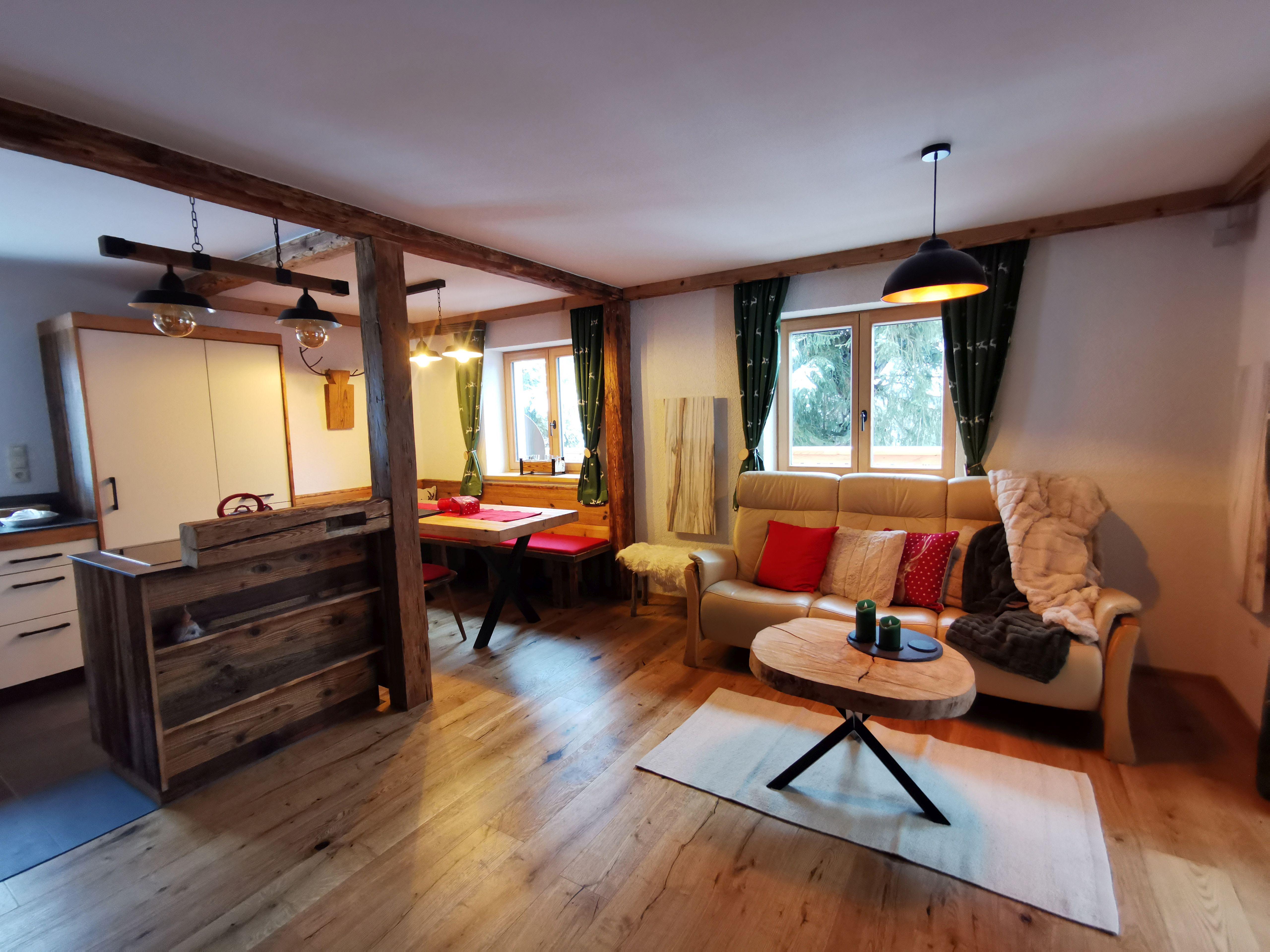 Unter Einsatz von nachhaltigen, ökologischen Bau- und Dämmstoffen (Fichtenholz, Lärchenholz und Holzfaserstoff) wurde in liebevoller Handwerksarbeit ressourcenschonend das gesamte Haus renoviert. So wurde der abgetragende Dachstuhl des Hauses zum Esstisch und zur Sitzbank weiterverarbeitet. Das am Waldrand liegende kleine Gartenhaus wurde zur Sauna umgebaut, eine große Sonnenterrasse mit Liegen und Sonnenschirm wartet auf Dich. Ankommen und urige Gemütlichkeit mit modernem Komfort genießen. Zwischen April und Oktober ist die sonnenerwärmte Außendusche in Betrieb. E-Bikes finden in der Fahrradgarage Platz, Strom zum Aufladen bereit. Im Winter kannst Du Schi oder Snowboards in den Schikeller stellen.