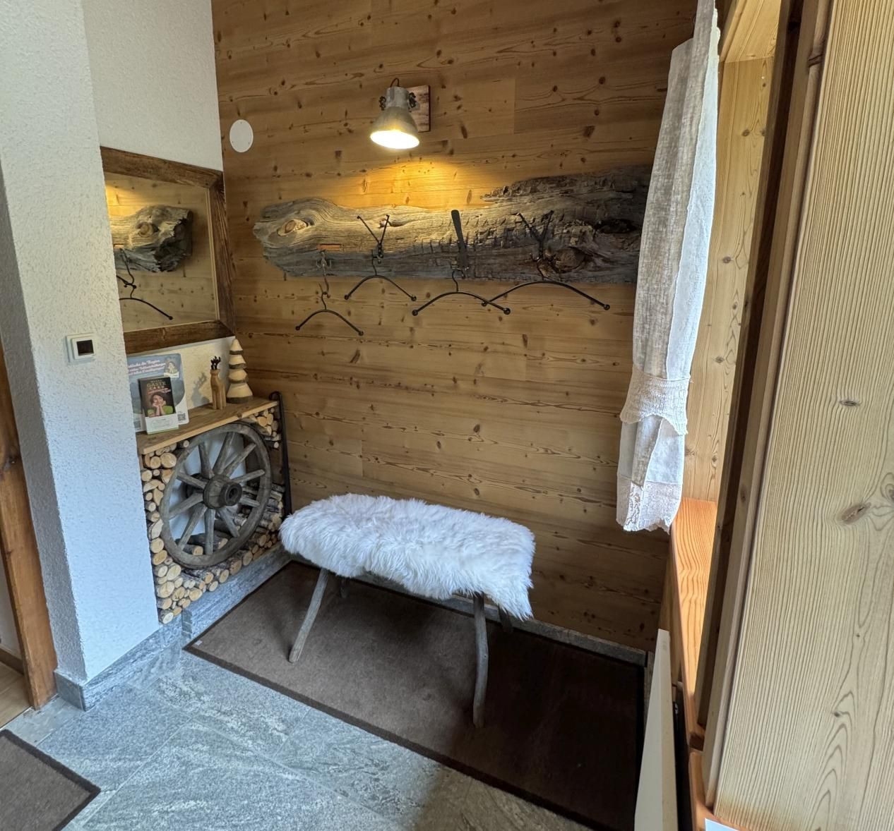 Im Erdgeschoß befindet sich ein uriger Vorraum mit genügend Platz für Kleidung und Schuhe.