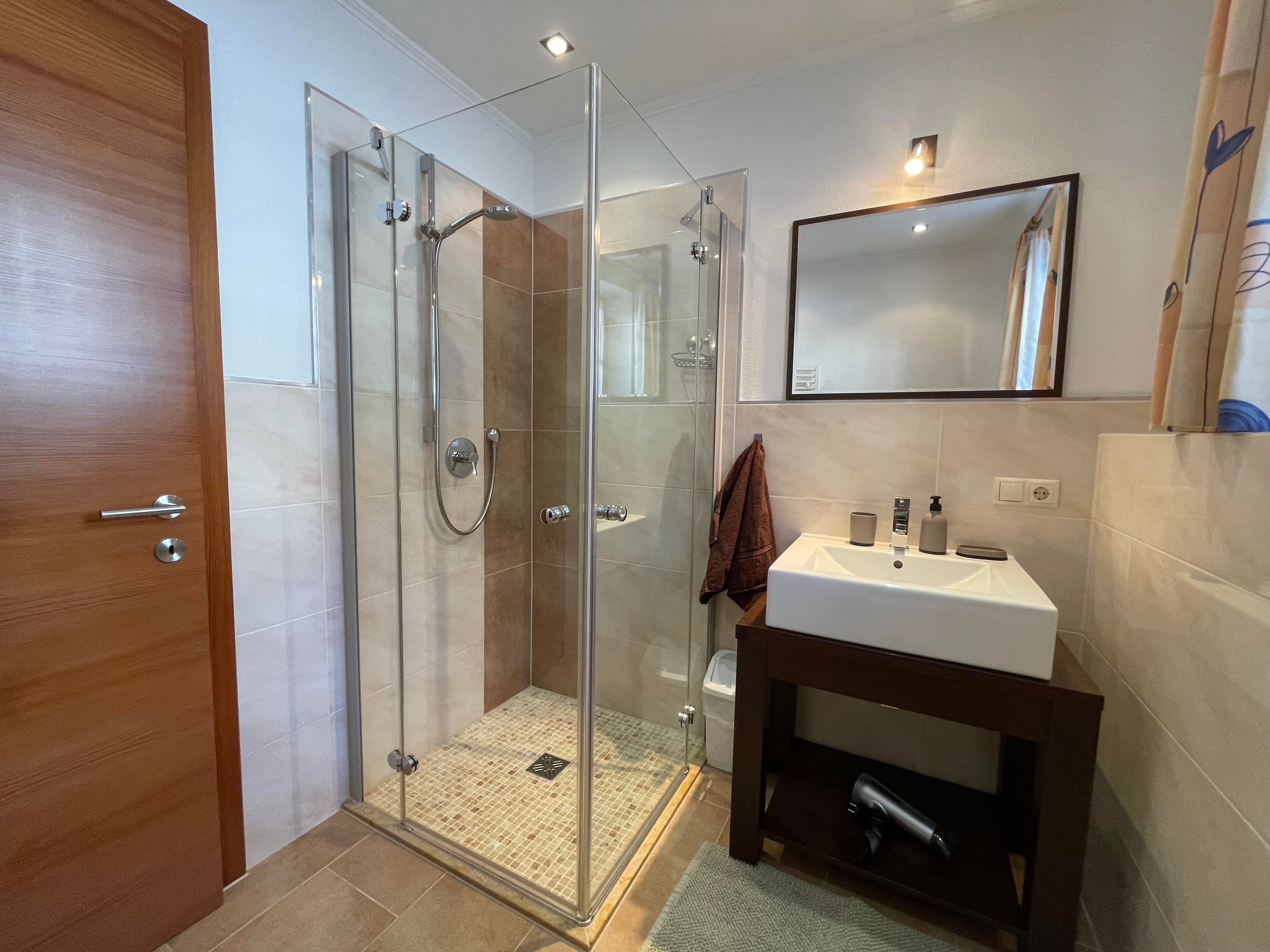 Das gemütliche Appartement (ca. 48 m²) mit eigenem Eingang besteht aus einem Doppelzimmer, einem Badezimmer mit Dusche/WC, einer vollausgestatteten Wohnküche (Cerankochfeld, Backrohr, Kühlschrank/Gefrierfach, Wasserkocher, Kaffeemaschine, Spülmaschine) mit Essbereich, Radio, TV und ausziehbarem Sofa (Schlafmöglichkeit für die 3. und 4. Person). Genießen Sie das Bergpanorama auf der möblierten Terrase