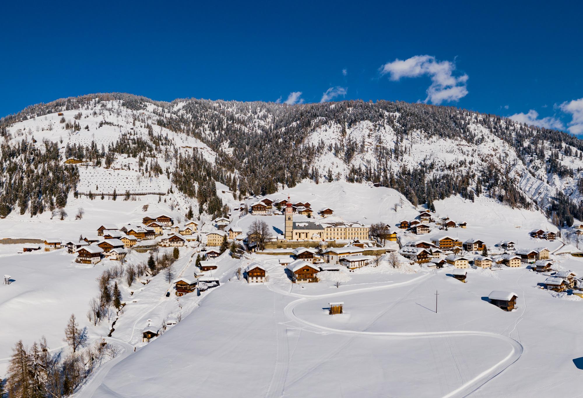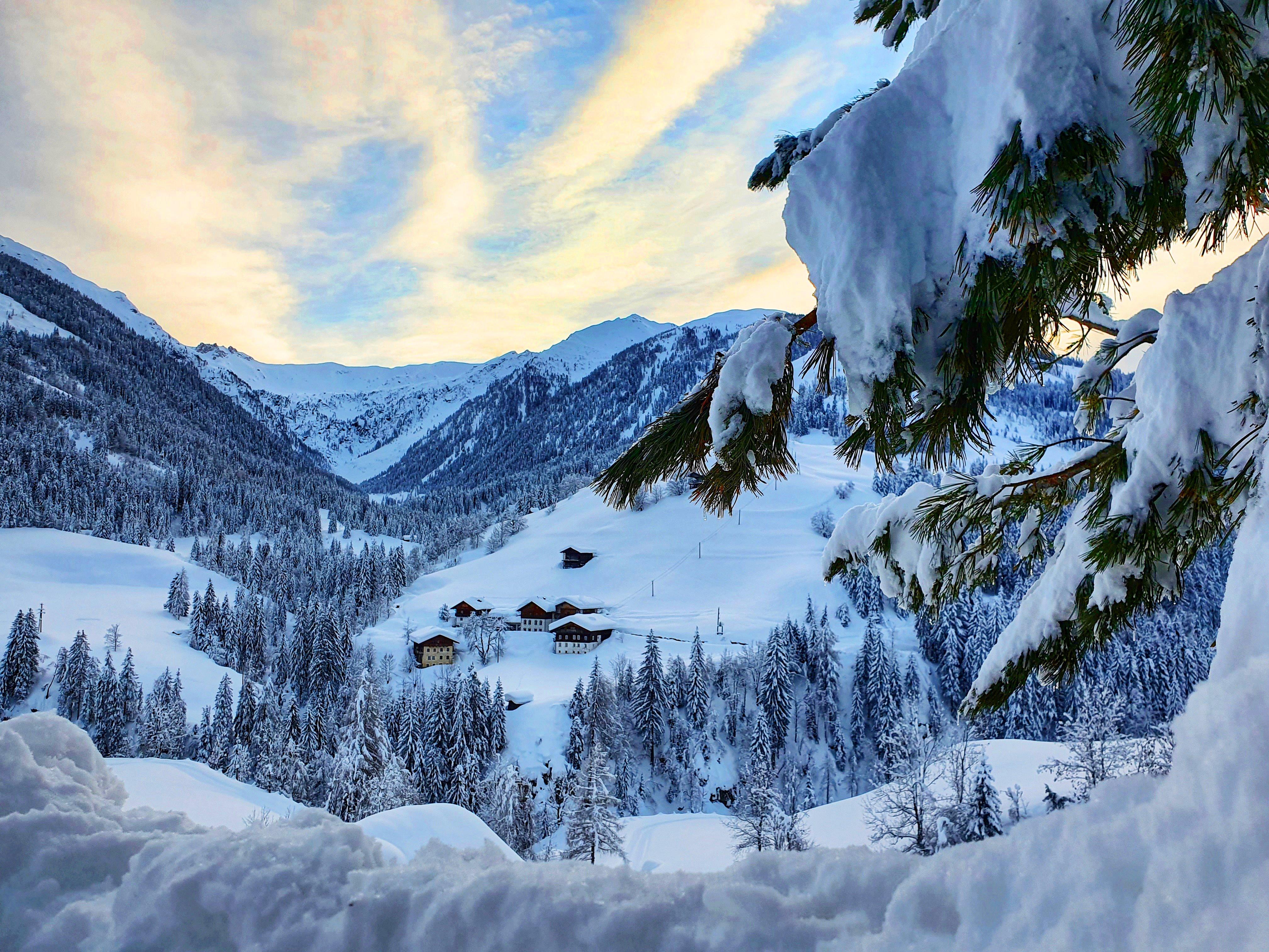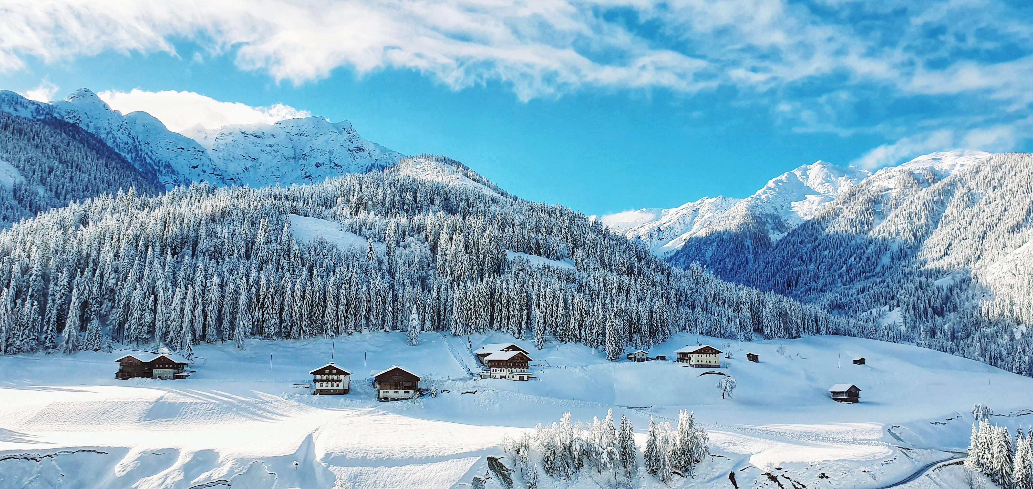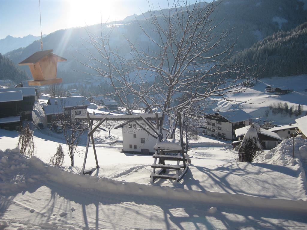 Genießen Sie die schneebedeckte Landschaft des Lesachtales. Unser Haus liegt etwas oberhalb vom Dorfzentrum und Sie haben eine wundervolle Übersicht über das Tal, in die mit Schnee bedeckten Karnischen Alpen und auf den blauen Himmel. In wenigen Schritten sind Sie im Ort, im kleinen Geschäft oder an der Bushaltestelle. Unser Haus fügt sich harmonisch in das Landschaftsbild des Naturbelassensten Tales Europas ein. Holz ist das gestaltgebende Material unseres Hauses, innen wie außen.