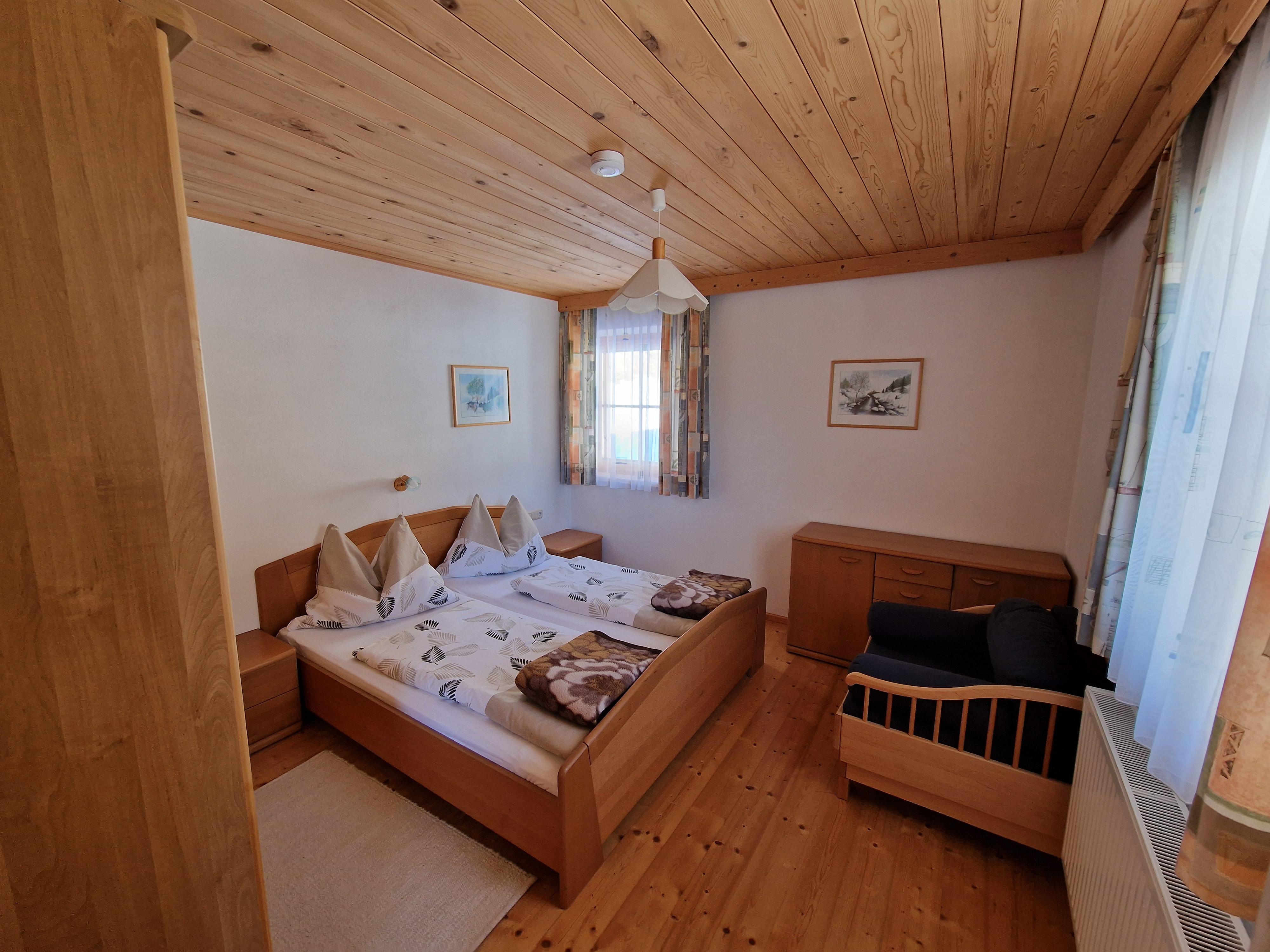Die Ferienwohnung Edelweiß ist bäuerlich und mit viel Holz, hell und freundlich eingerichtet und eignet sich besonders für 2-3 Personen. Sie bietet einen tollen Panoramablick in die Karnischen Alpen und über unser Dorf. Sie hat zwei Balkone, gegen Süden und Osten.