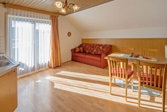 Ferienwohnung für 2-4 Personen mit 28 m², Schlafzimmer, Wohnraum mit Doppelschlafcouch, Kochnische. Nebenkosten: Endreinigung