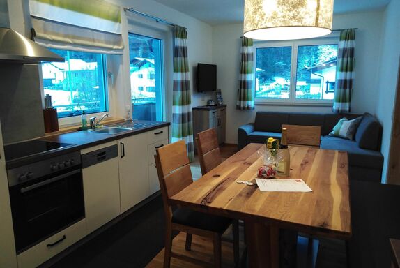 Die komplett neu errichtete Wohnung ist 55 m² groß, besteht aus 2 Schlafzimmern (ein Dreibettzimmer und ein Doppelzimmer mit Ausziehcouch für 1 Person), einem Badezimmer mit Dusche, WC, Waschbecken, 1 separates WC, einem Wohnraum mit komplett ausgestatteter Küchenzeile, Essplatz, gemütlicher Couch, TV. Weiters verfügt die Wohnung über einen Balkon und es steht eine Sauna nur für Sie zur Verfügung.