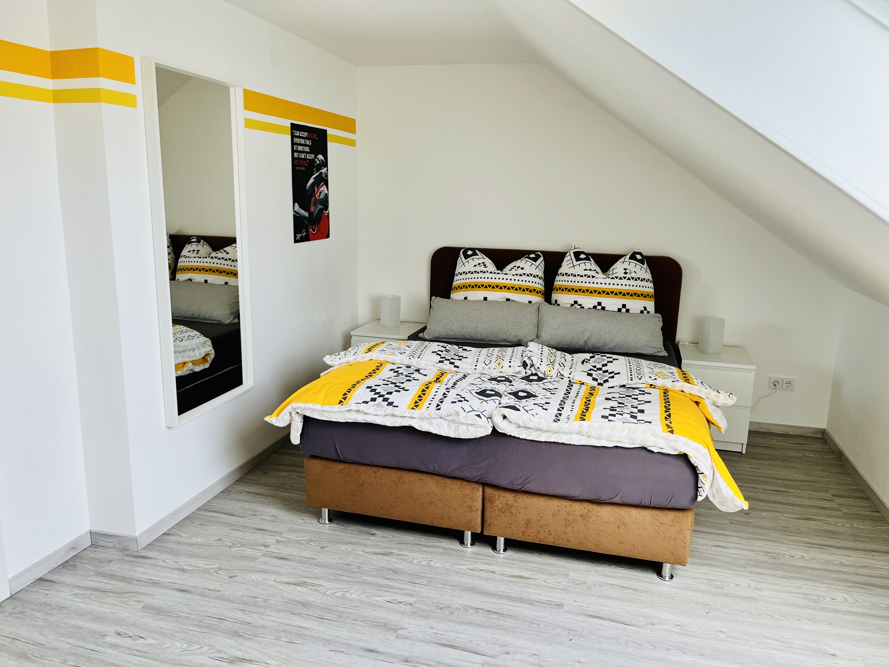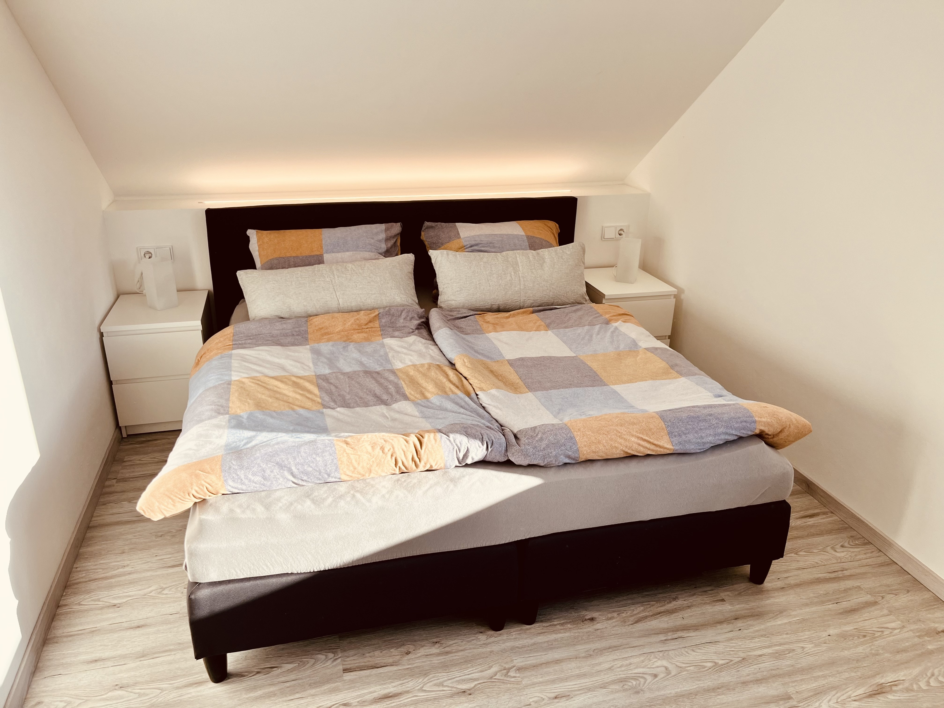 Die Ferienwohnung verfügt über 2 Schlafzimmer mit einem Doppel-Boxspringbett. Eines der Schlafzimmer besitzt einen begehbaren Kleiderschrank, sowie einen 40“ LED TV. Das zweite Schlafzimmer beinhaltet neben dem Schlafbereich auch einen Arbeitsbereich mit einem Schreibtisch, 24“ Monitor, Tastatur und Maus, sowie einem gemütlichen Bürodrehstuhl.
