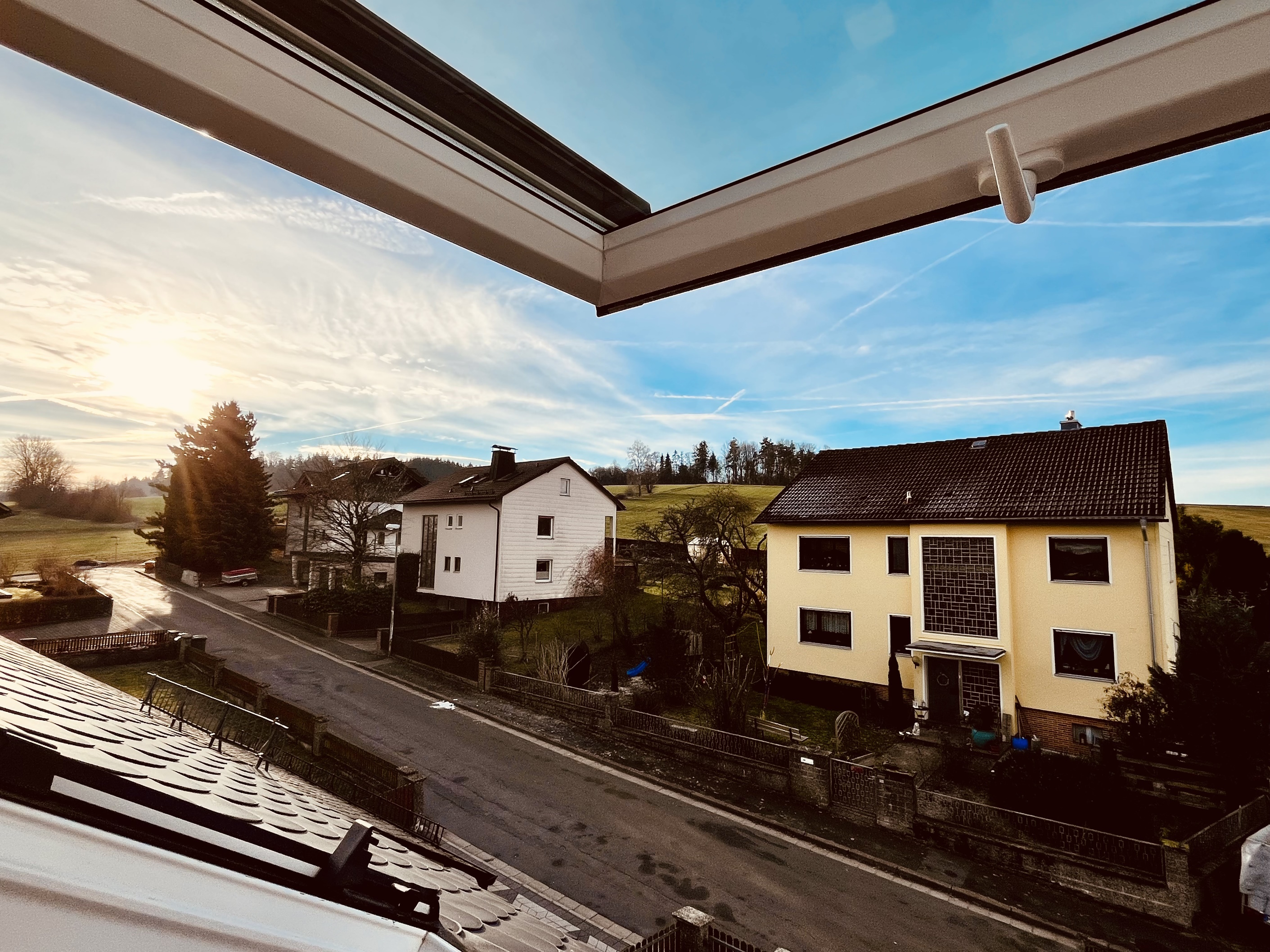 Auch der Ausblick ist nicht zu verachten. Bietet die Wohnung Ihnen auf der einen Seite einen Blick auf dem Waldrand und Felder und Wiesen und einen wunderbaren Ausblick auf unsere Marktgemeinde auf der anderen Seite.