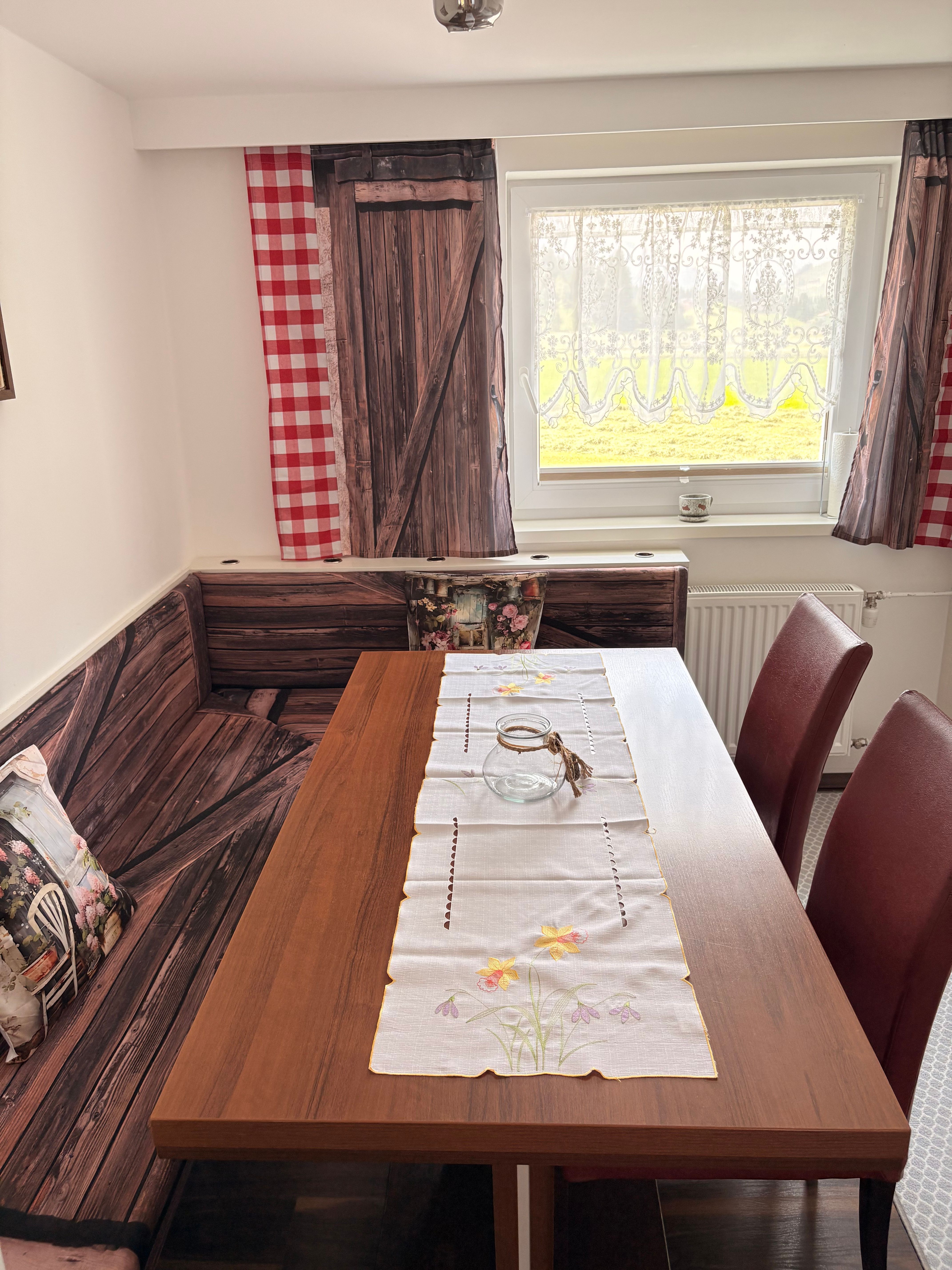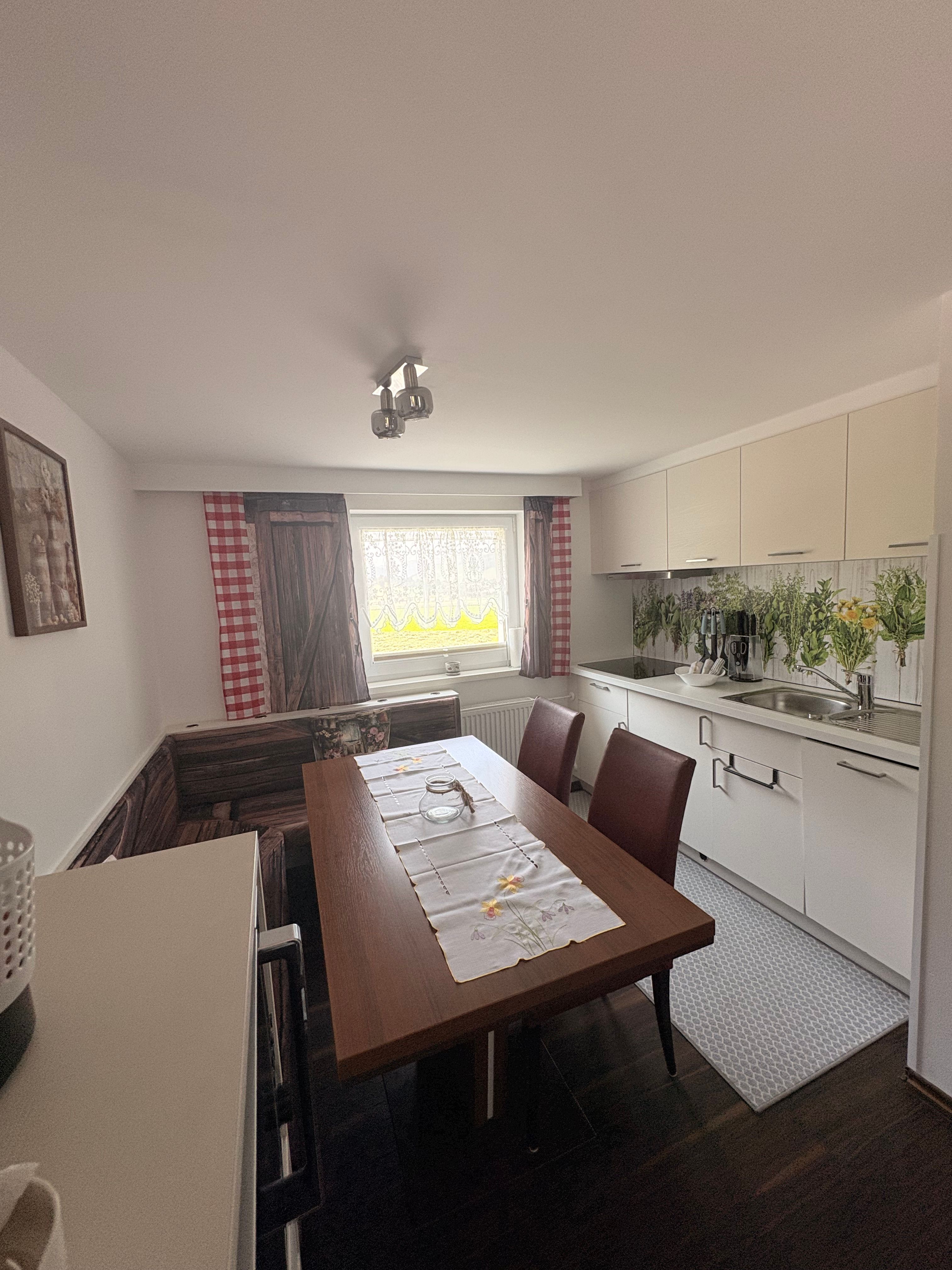 1 voll ausgestattete Wohnküche mit 4 Platten Induktionskochfeld, Geschirrspülmaschine, Dunstabzug, Mikrowelle, Wasserkocher, Mixer, Kaffeemaschine mit Kapseln und Filterkaffee. Kochgeschirr , Teller, Besteck, Küchentücher, Gläser.