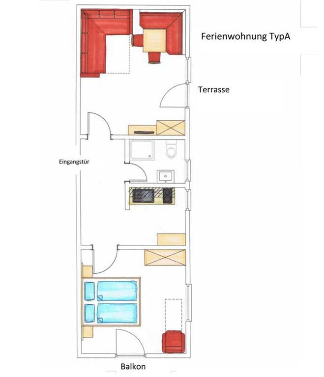 Auf großzügigen 45m² finden bis zu 4 Personen ausreichend Platz und ein feines Urlaubszuhause!