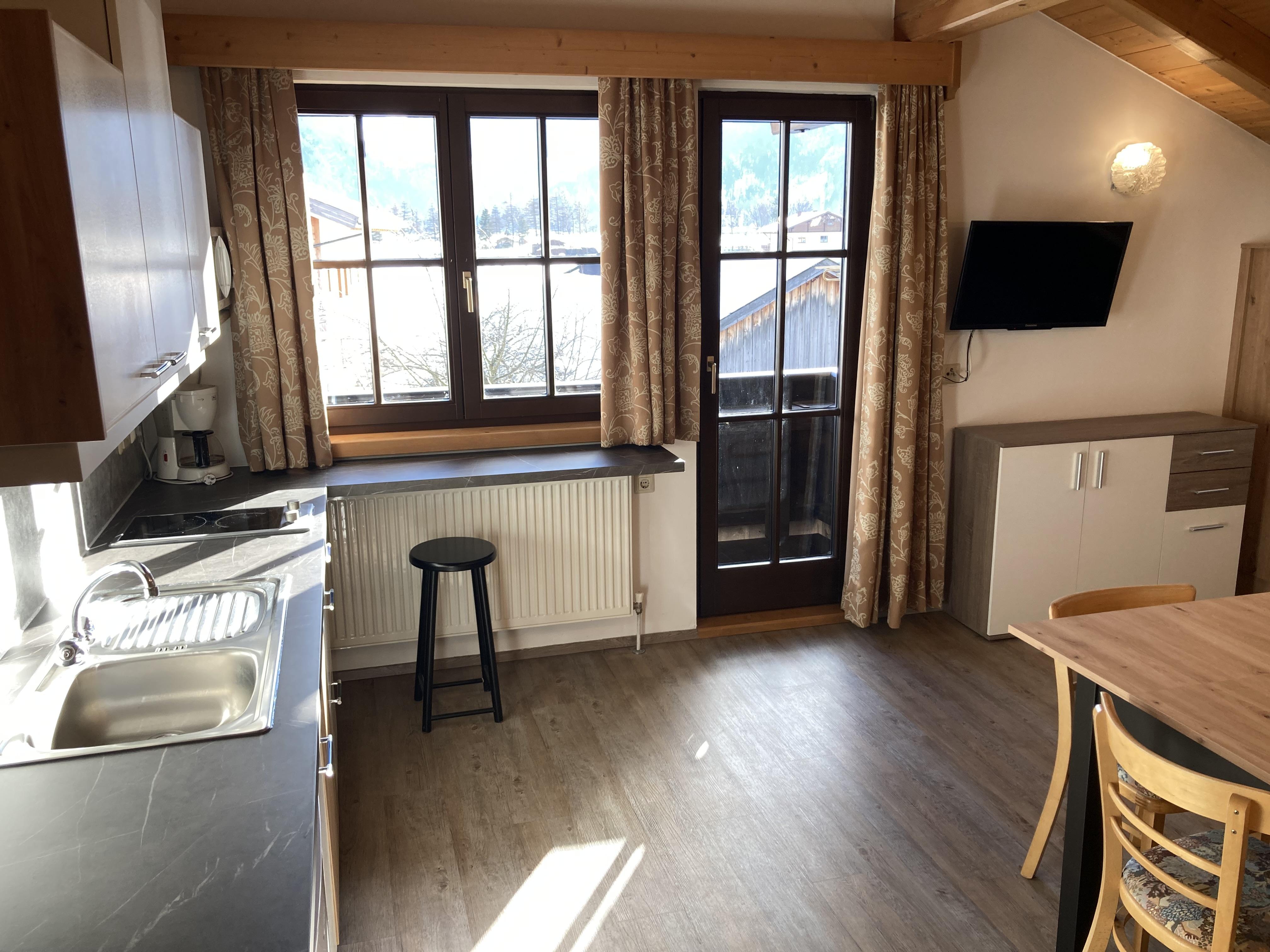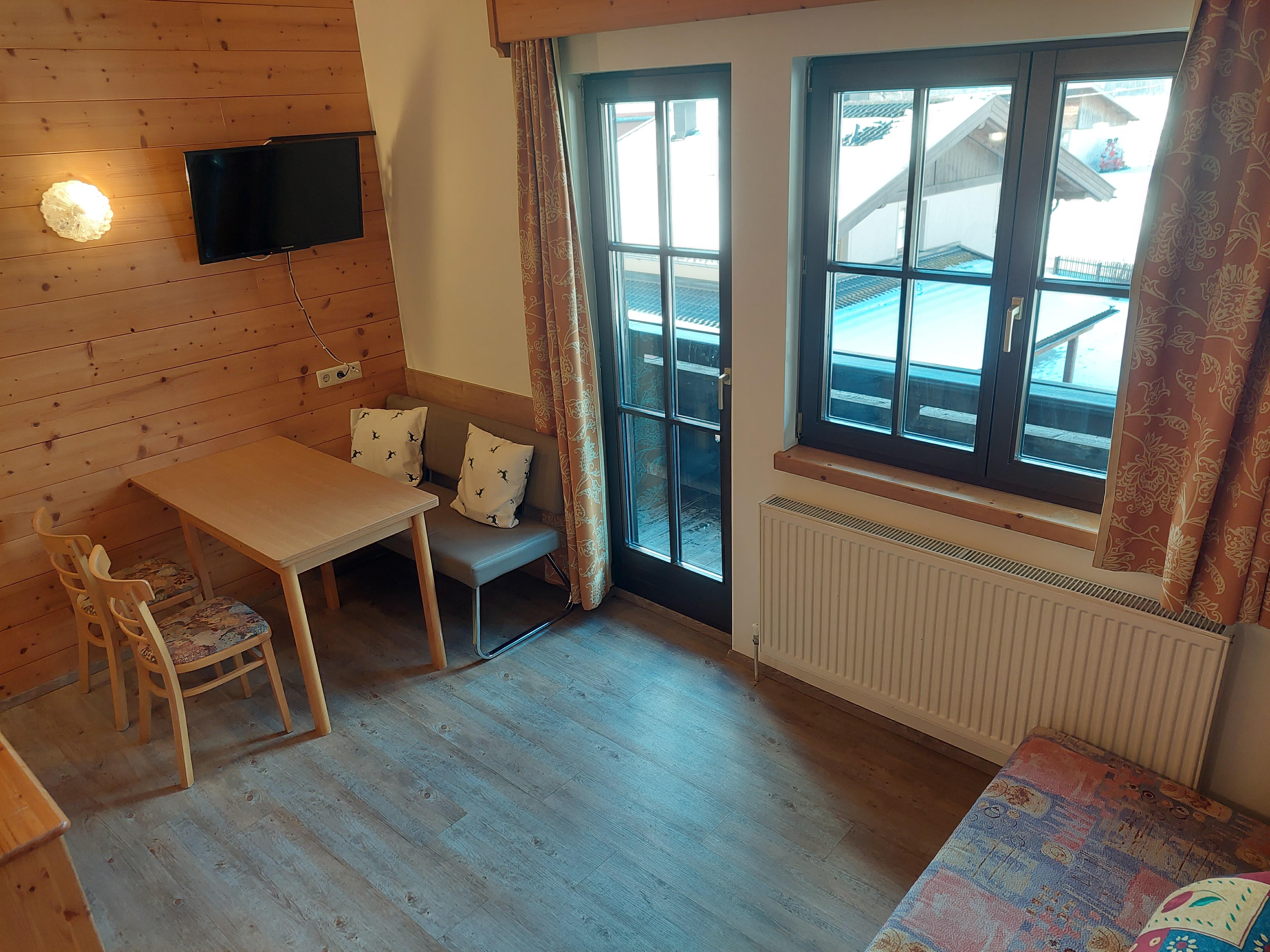 Gemütliches Appartement Panoramablick mit ca. 40 m² verfügt über 1 Doppelzimmer und 1 Wohn-Schlafraum mit ausziehbarer Couch und Kochnische (2 Herdplatten, Mikrowelle, Geschirrspüler, Kaffeemaschine, Wasserkocher, Toaster), sowie Essecke, 1 Badezimmer mit DU/WC, Haartrockner, Flat-TV, WLAN und sonniger Balkon mit Panoramablick!